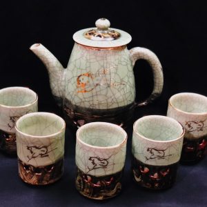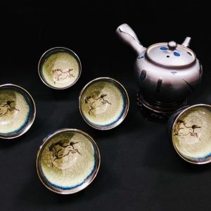 Bộ trà gốm Nhật somayaki men thỏ ngựa vàng đẹp