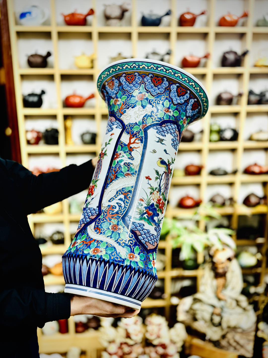 Bình dáng trụ Long Phụng Sum Vầy vẽ tay đẹp xuất sắc mời các bác ngắm và sưu tầm chơi tết, làm quà tặng, quà biếu VIP