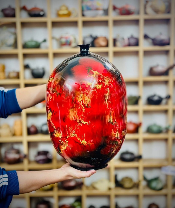 Siêu phẩm hút lộc – Men phủ theo lối sơn mài như những ngọn lửa đang bùng cháy mạnh mẽ mời các bác ngắm và sưu tầm