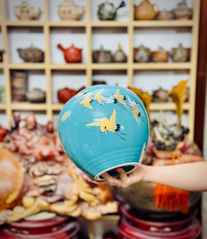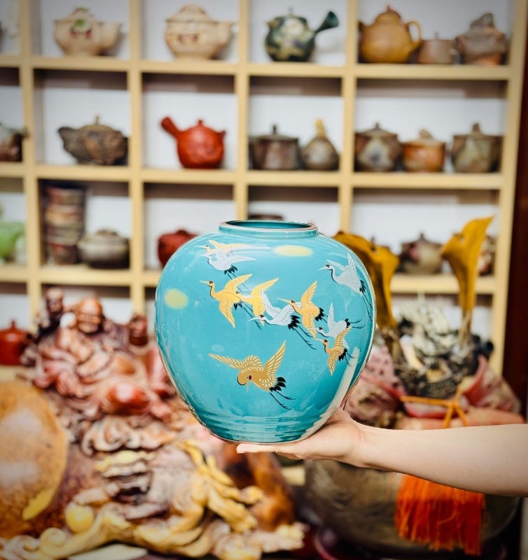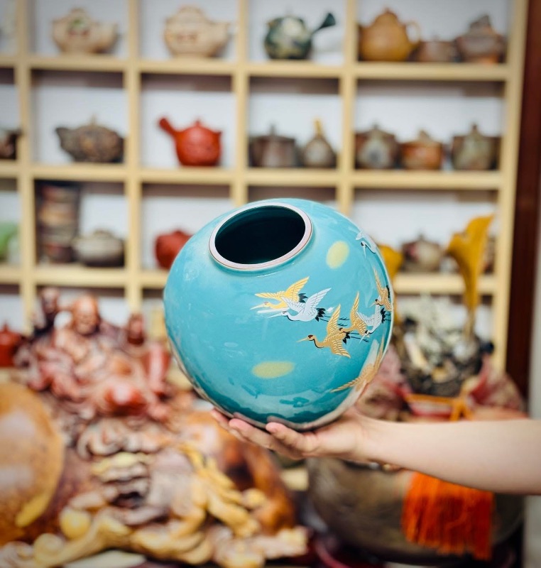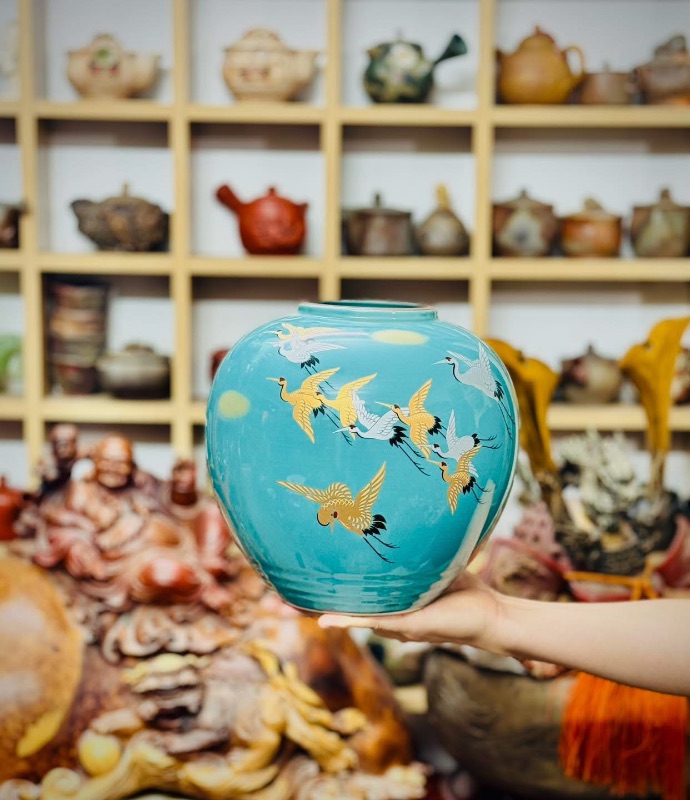 Bình kutani vẽ hạc vàng rất đẹp mời các bác ngắm và sưu tầm
