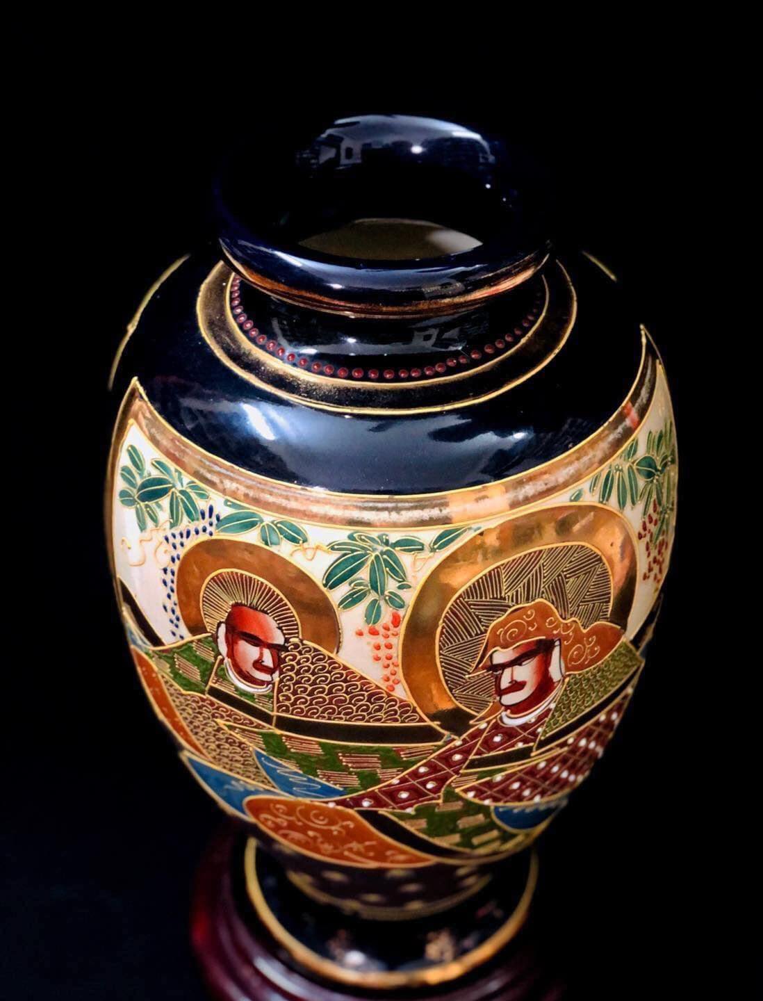 – Bình Satsuma xanh Cobalt vẽ vàng