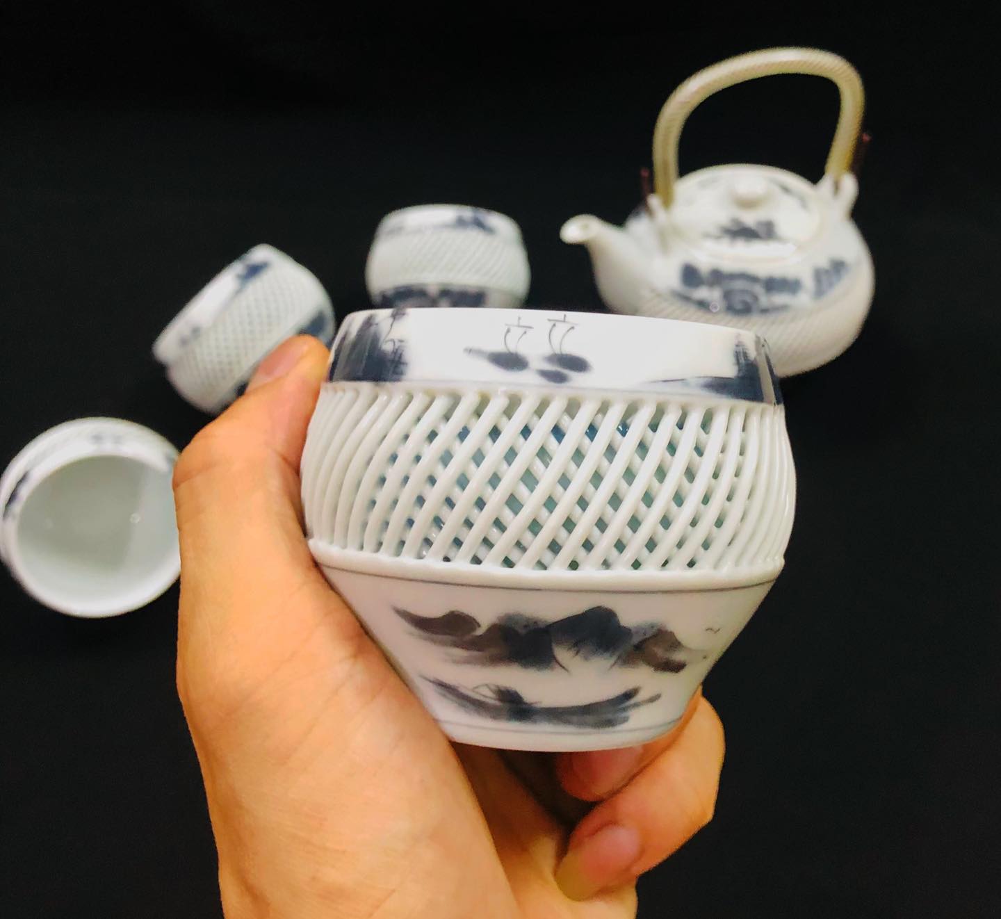 Bộ trà lưới 2 lớp cao cấp men lam kết hợp siêu đẹp ạ