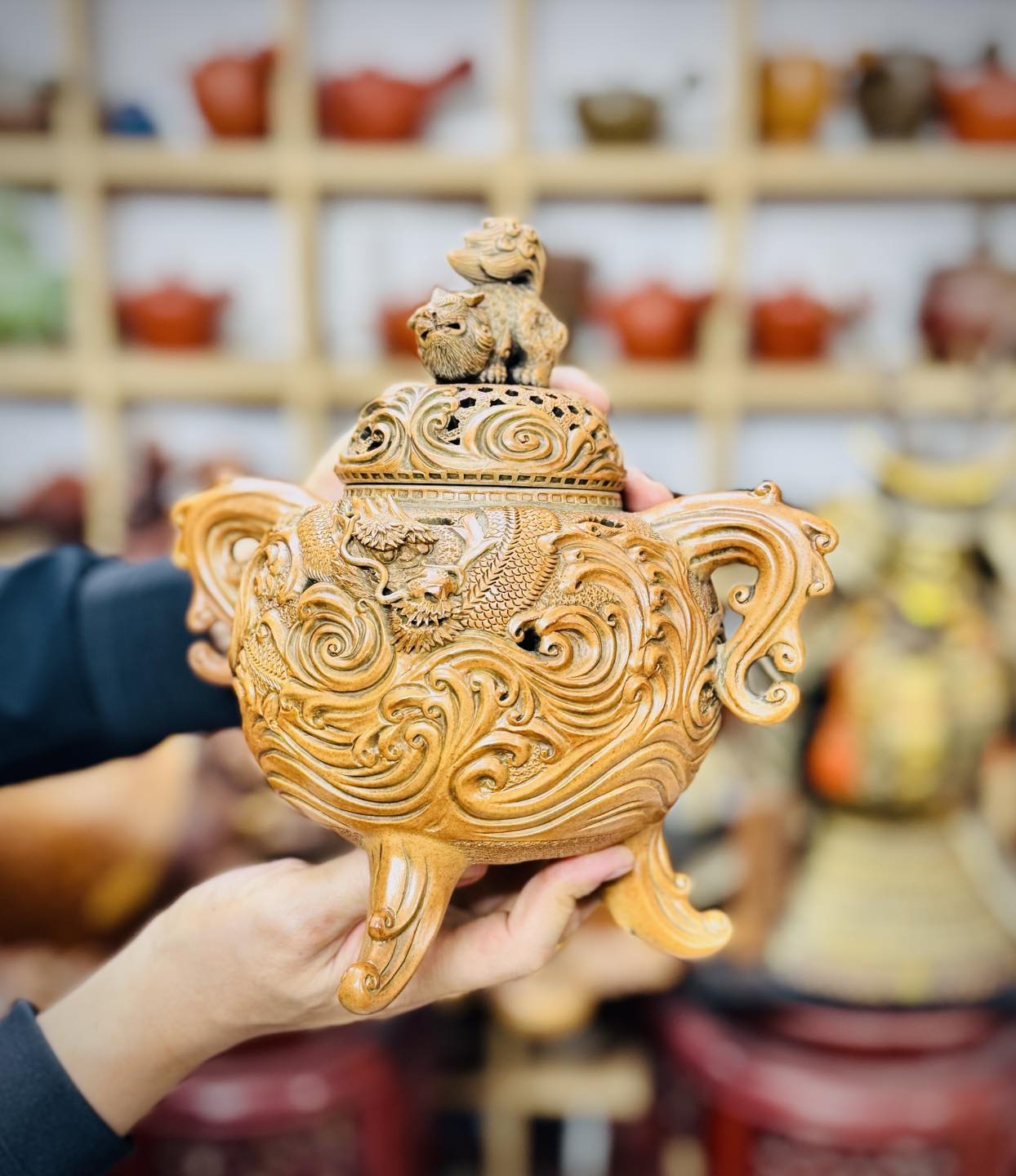 – Chế tác thủ công tích Rồng đỉnh Kỳ Lân bóc tách 2 lớp, linh vật được nghệ nhân tạo hình truyền thần, có hồn