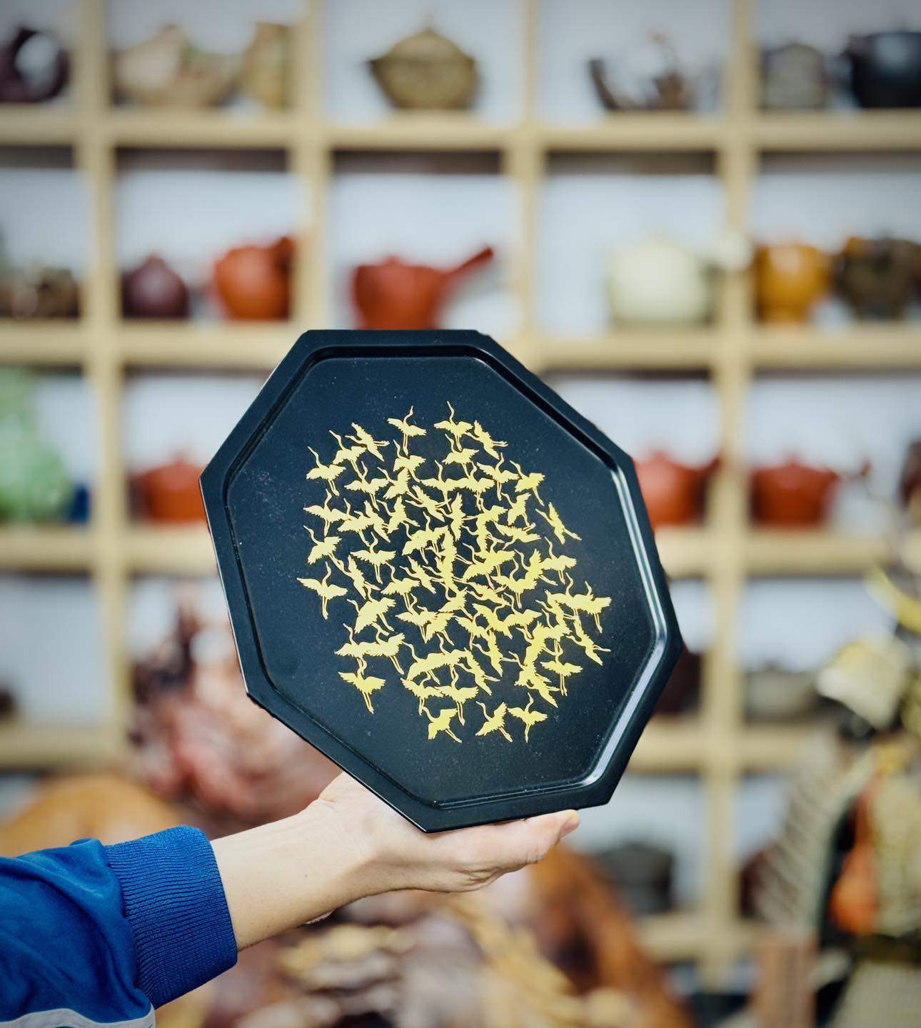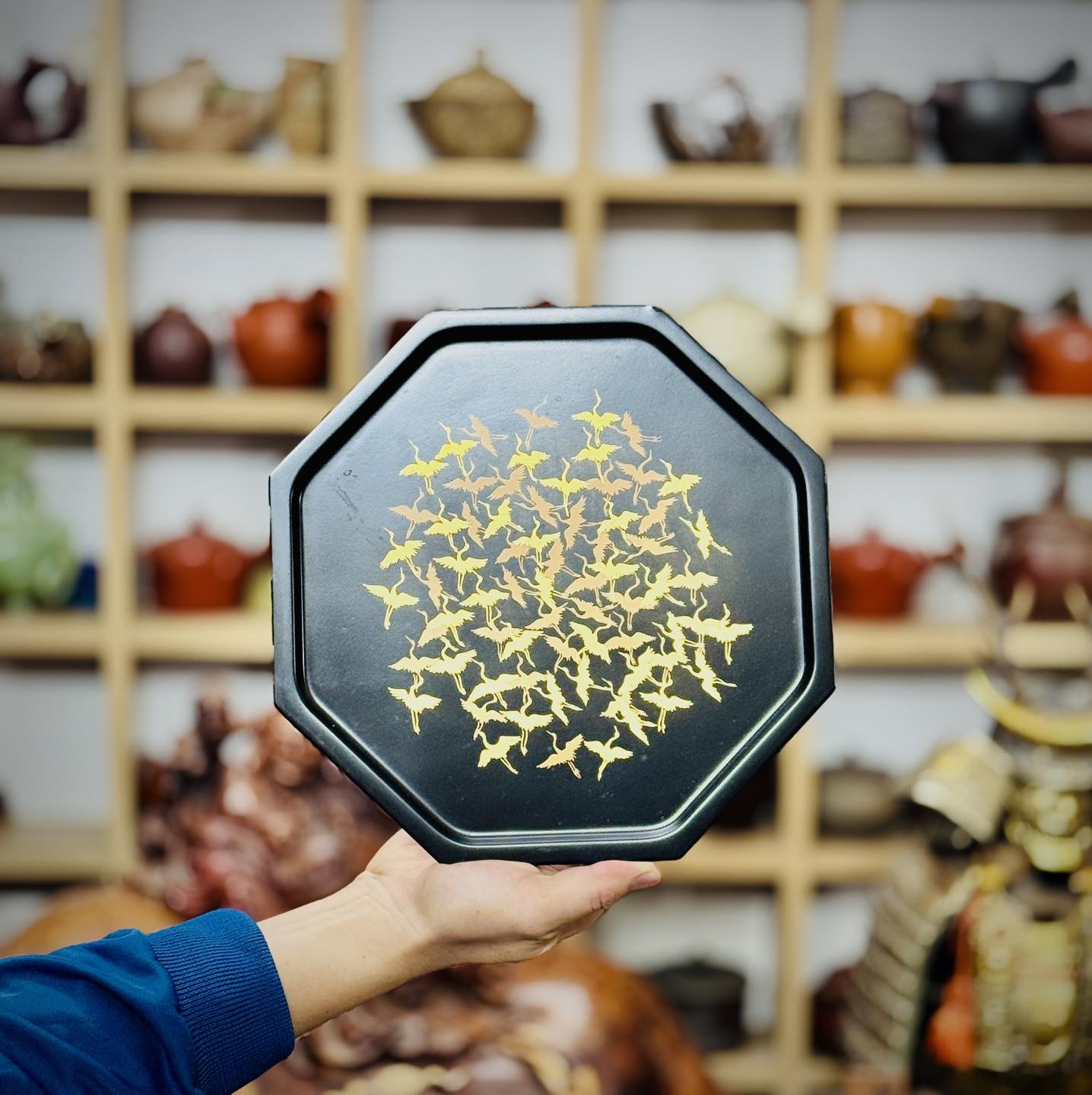 Khay sơn mài bách hạc vẽ vàng bát giác đẹp mời các bác ngắm và sưu tầm