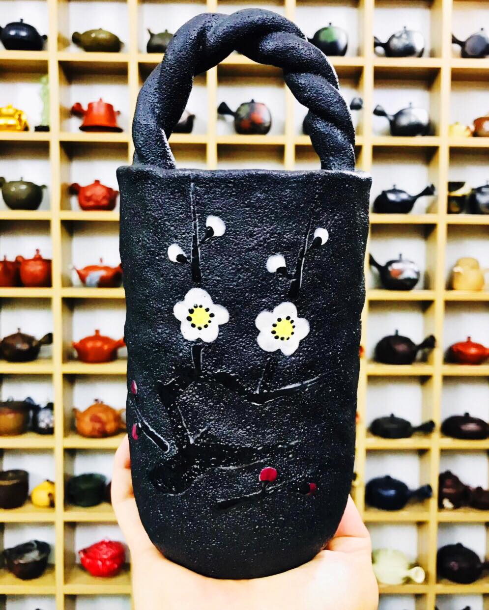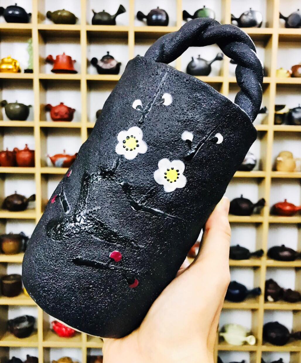 – Nhưng bông hoa Anh Đào được nghệ nhân điểm làm nổi bật trên nền gốm đen rất nghệ thuật