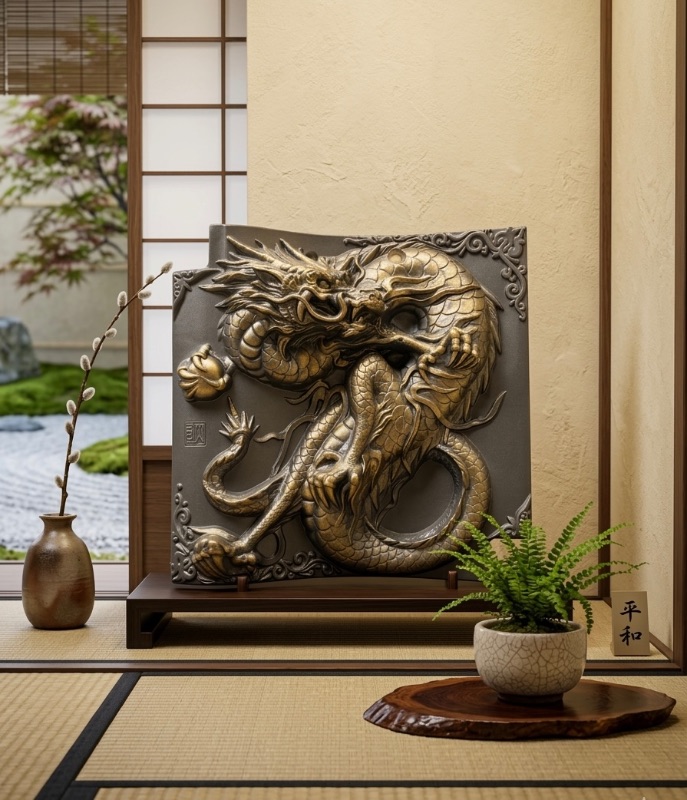 – Tranh gốm được nghệ nhân đắp nổi và tạo hình linh vật rồng rất đẹp và thần thái.