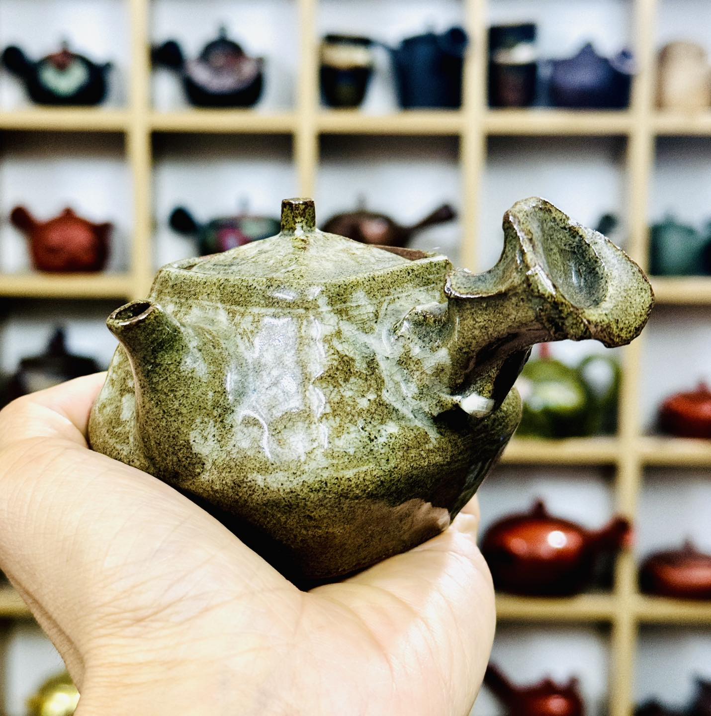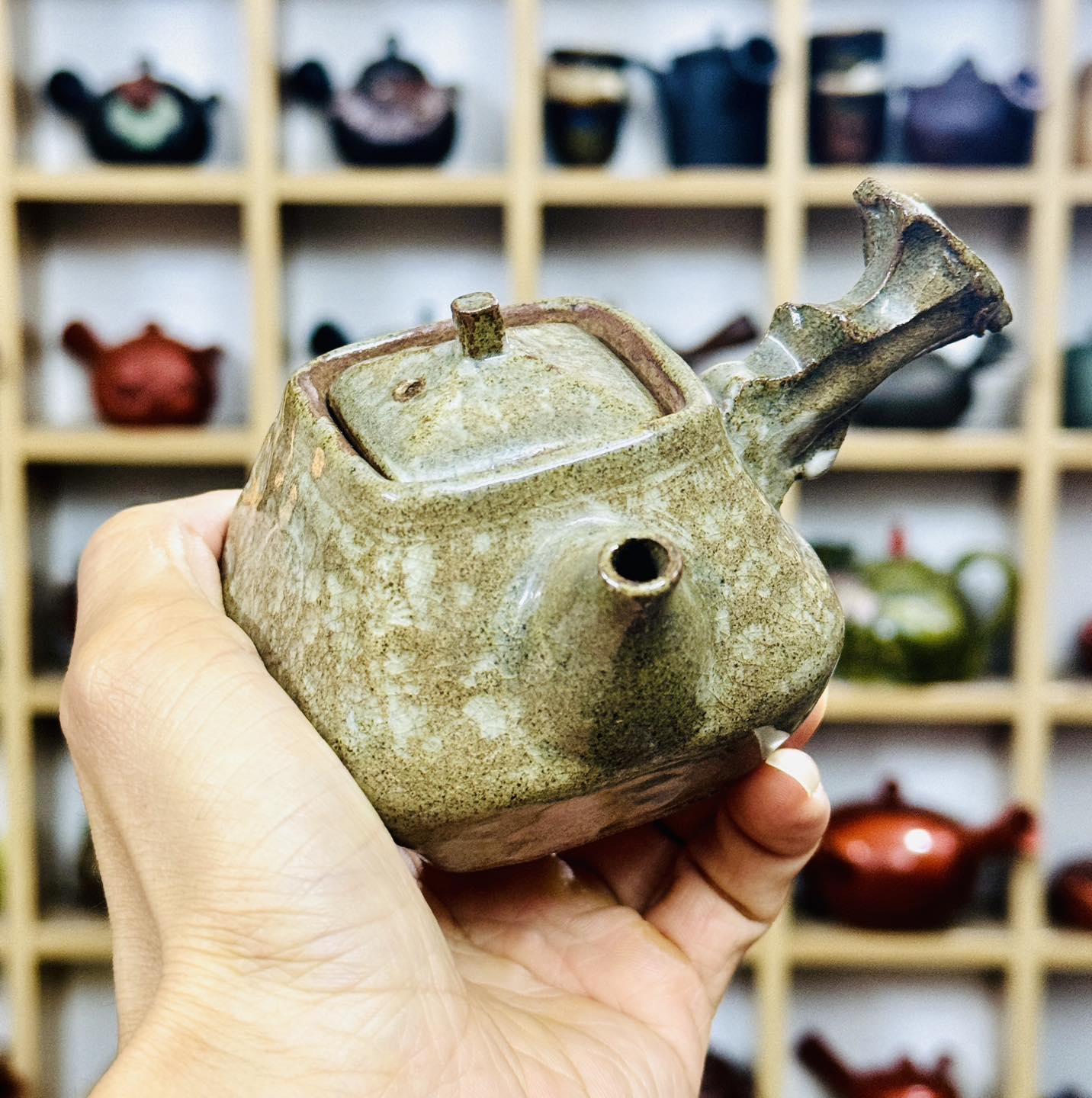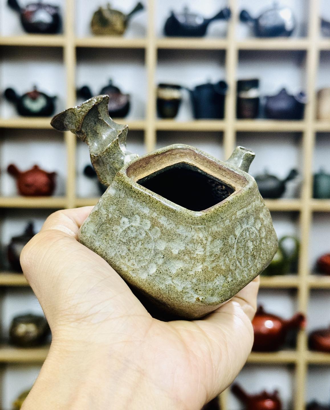 Ấm Mộc Dáng Tứ Phương Tay Cầm Rất Đẹp Và Độc Đáo