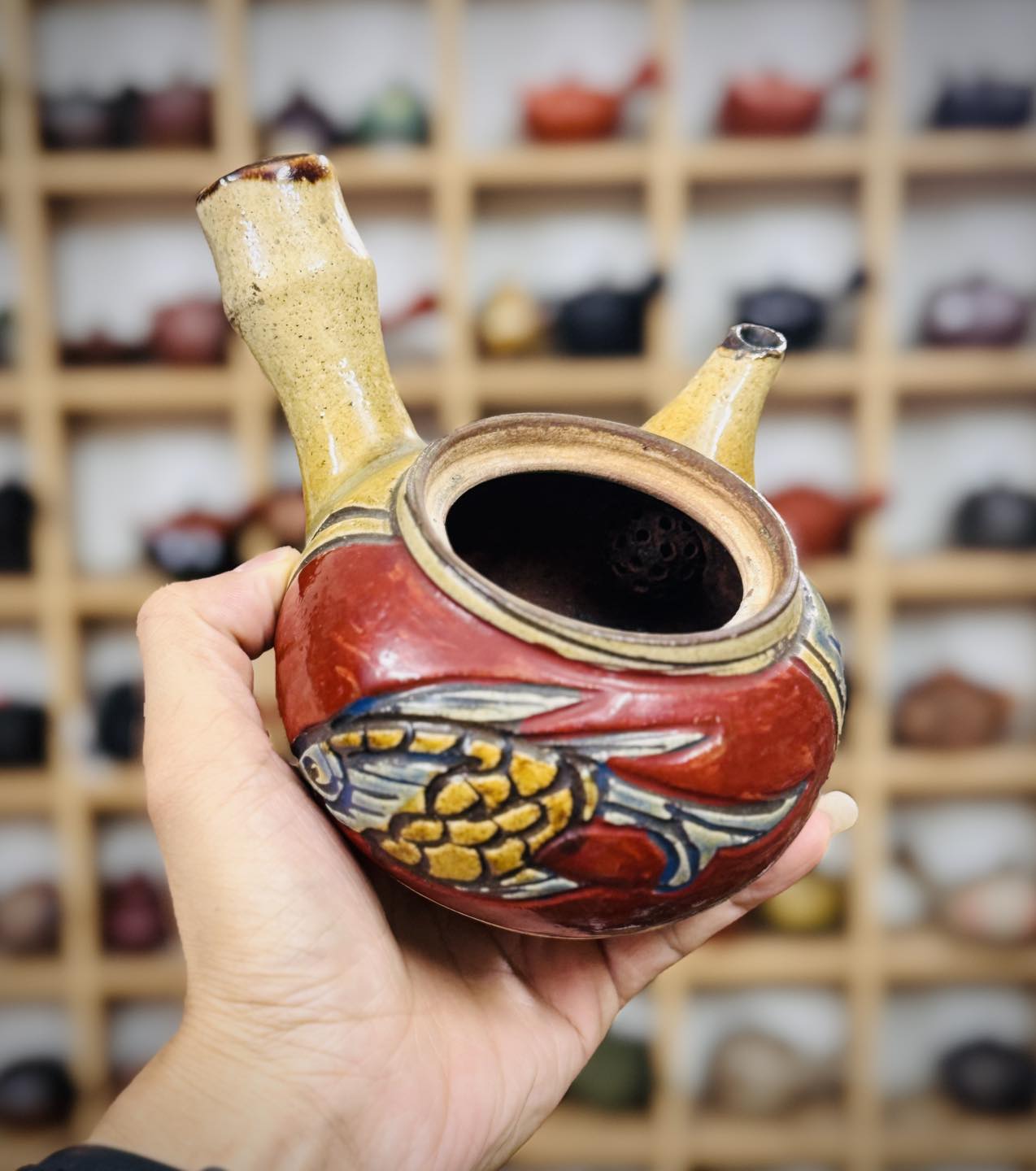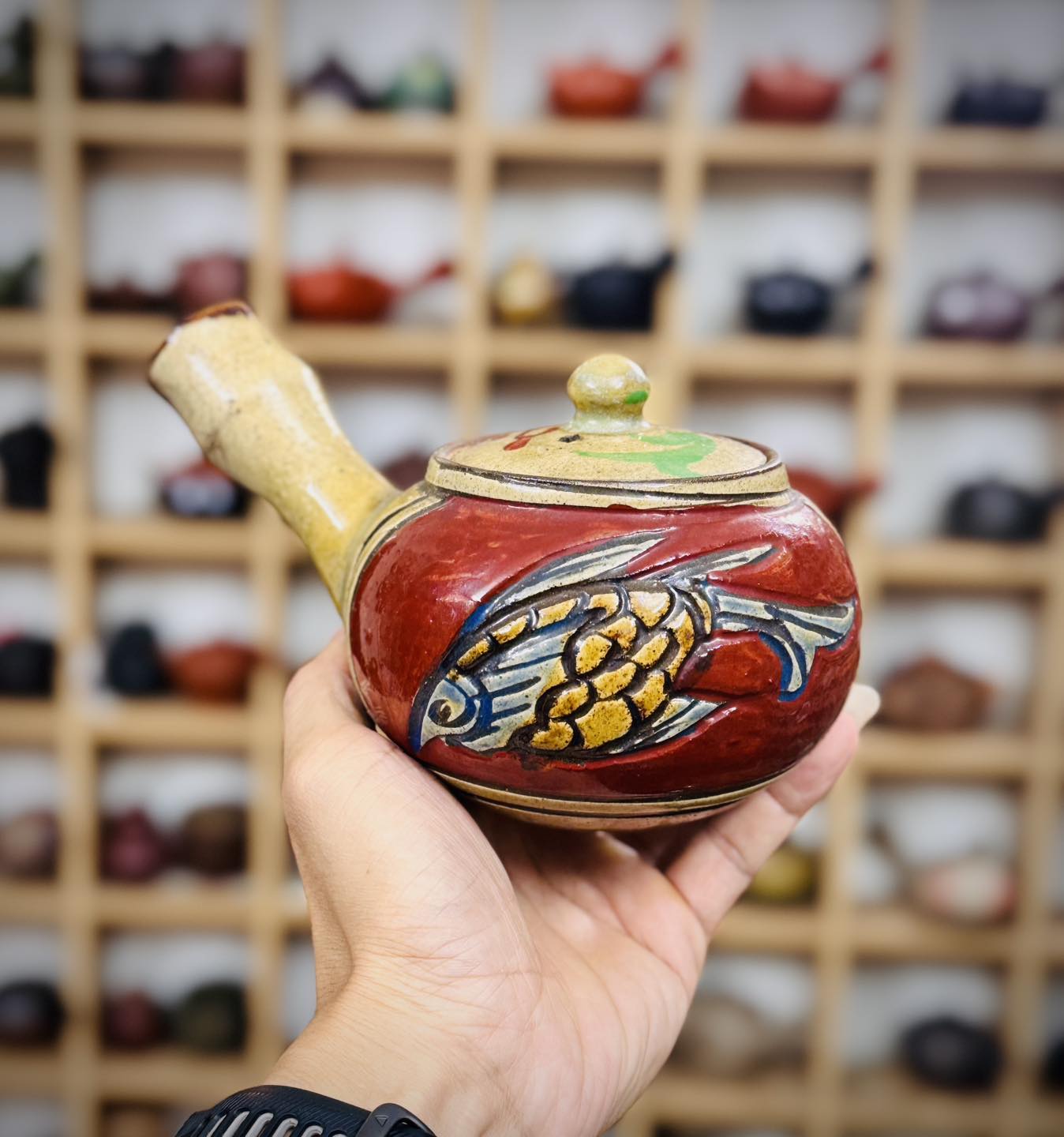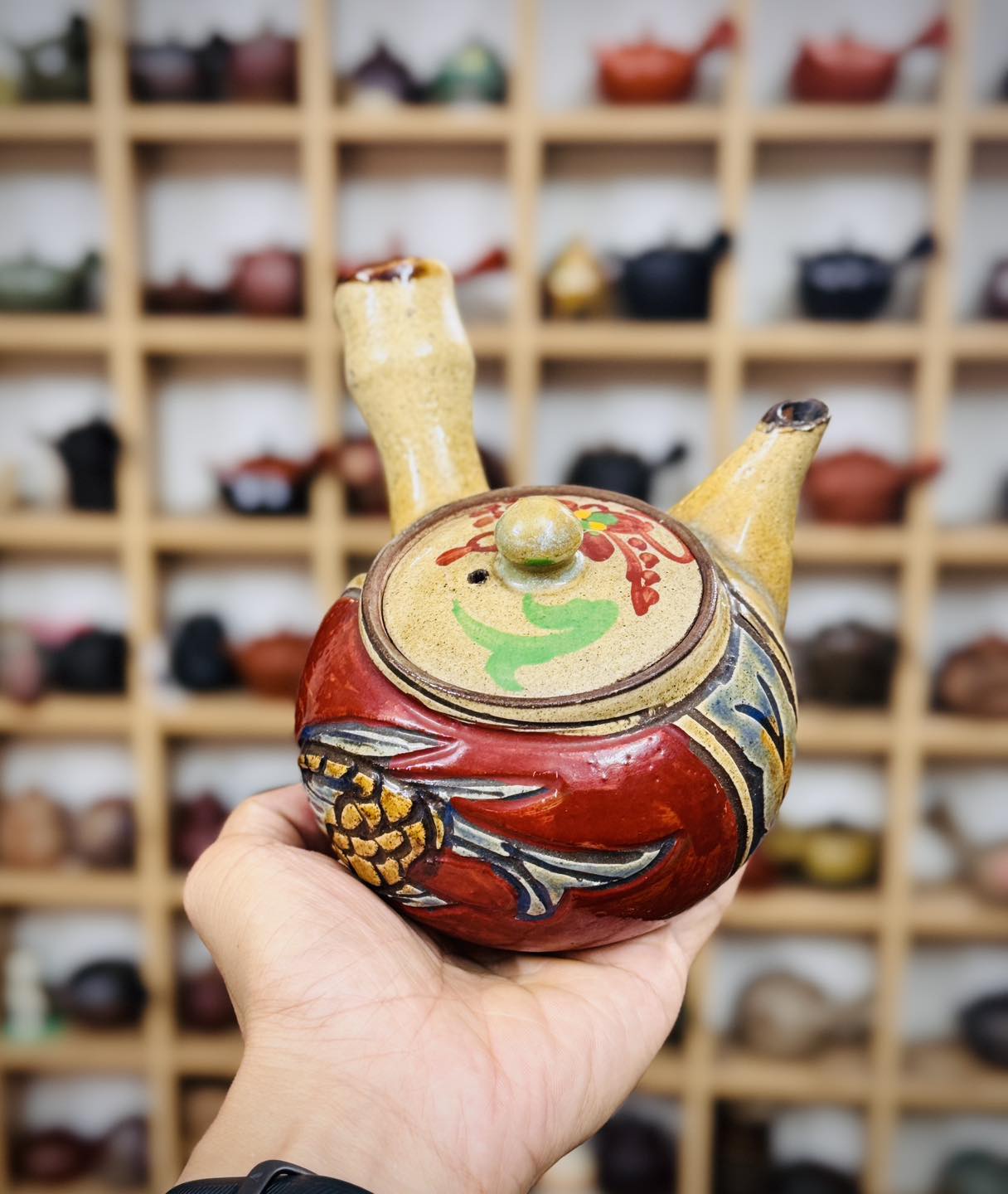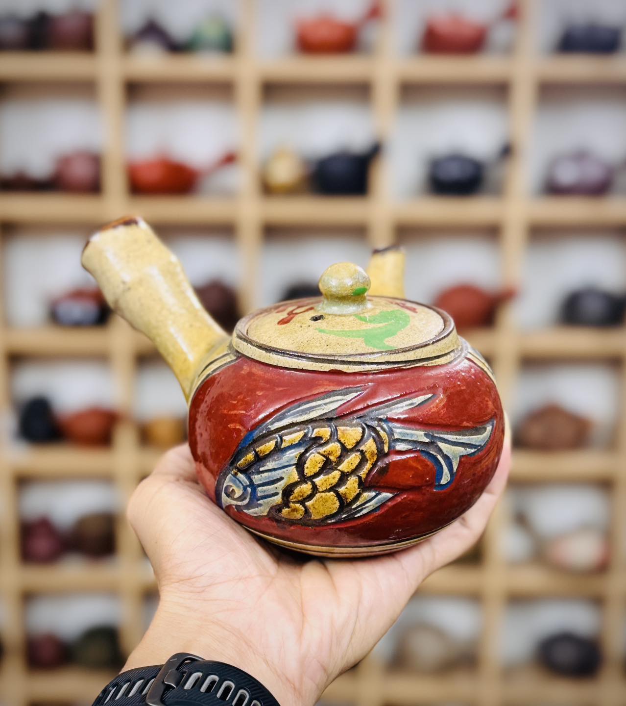 Ấm trà cá đỏ cổ hiếm của lò gốm nổi tiếng Tsuboya mời các bác ngắm và sưu tầm ạ