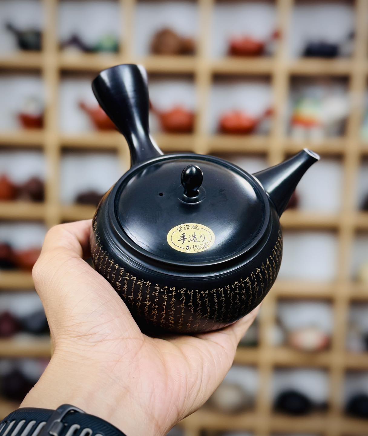 Ấm trà Tokoname đen khắc tay thủ công Bát Nhã Tâm Kinh rất đẹp mời các bác ngắm và sưu tầm