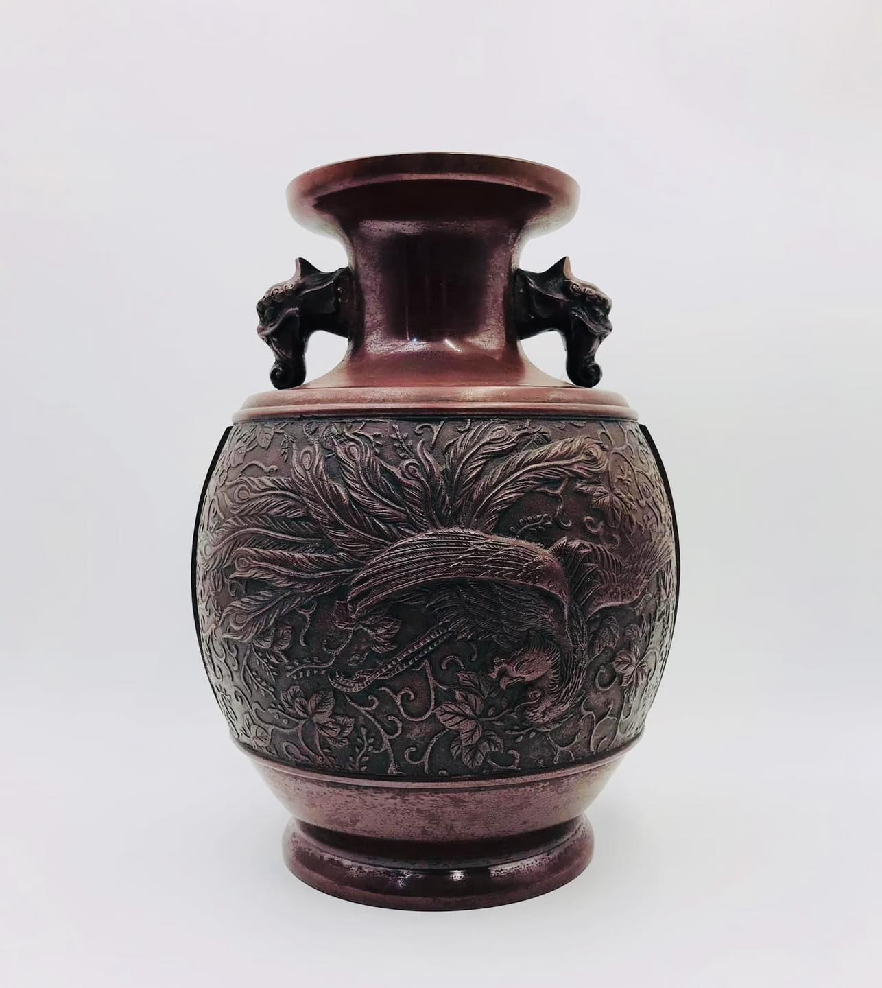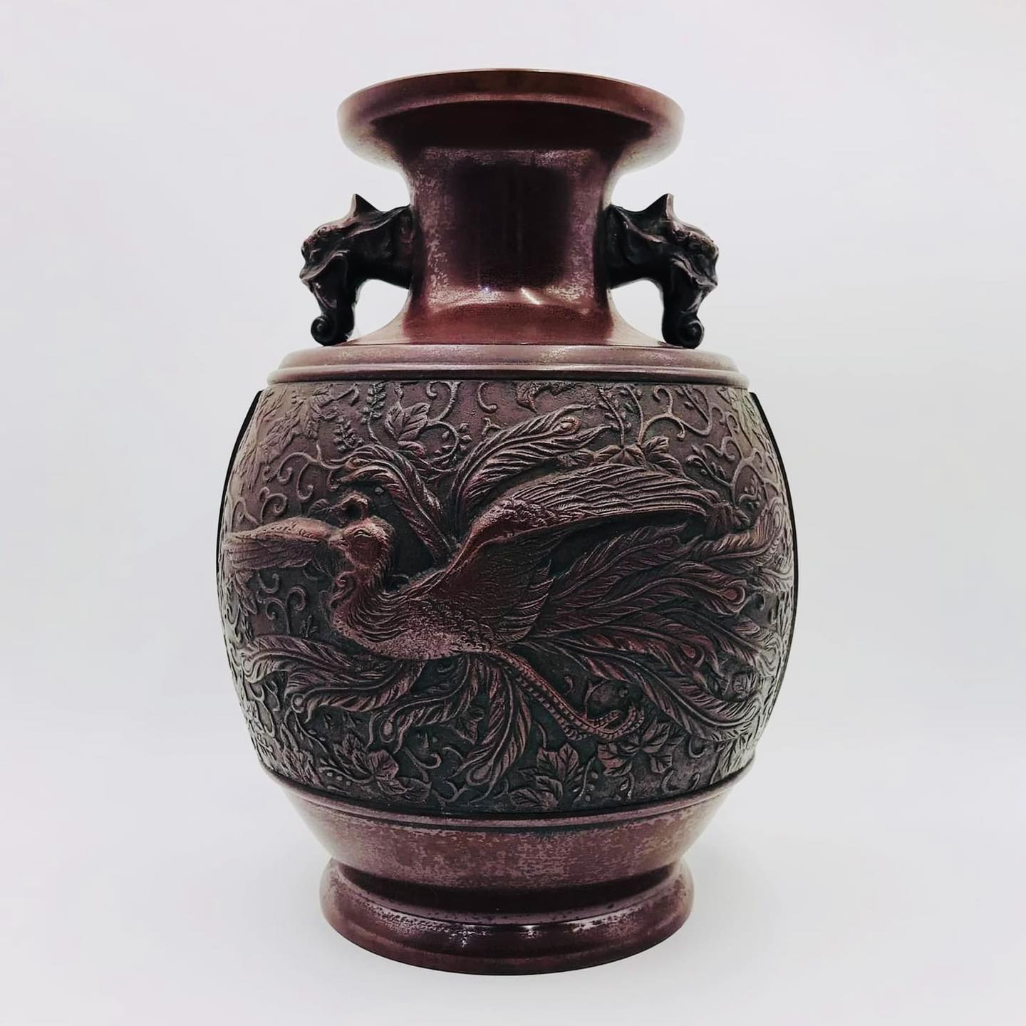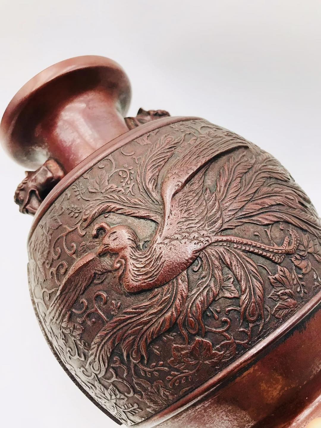 Bình đồng xưa khảm nổi tích Phượng Hoàng nổi 3D tứ diện rất đẹp mời các bác ngắm và sưu tầm ạ