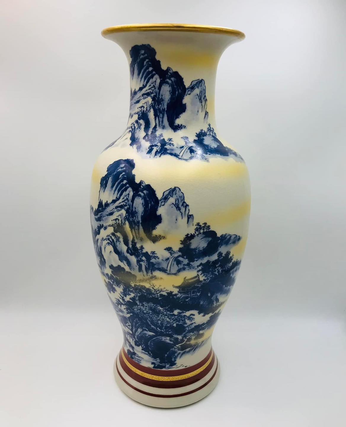 Bình gốm men rạn vẽ tay vẽ vàng Sơn Thuỷ Tùng Đình rất đẹp mời các bác ngắm và sưu tầm