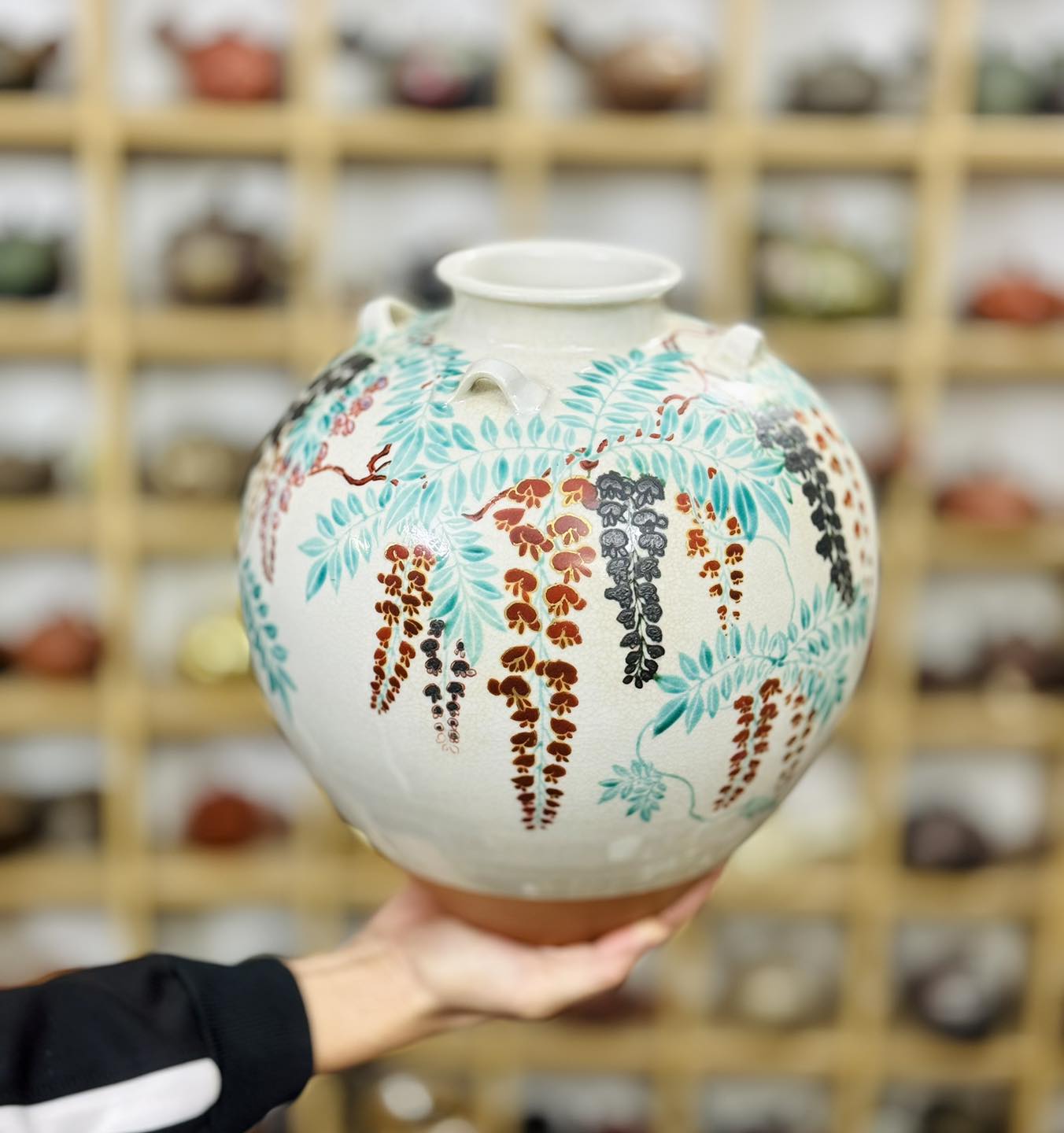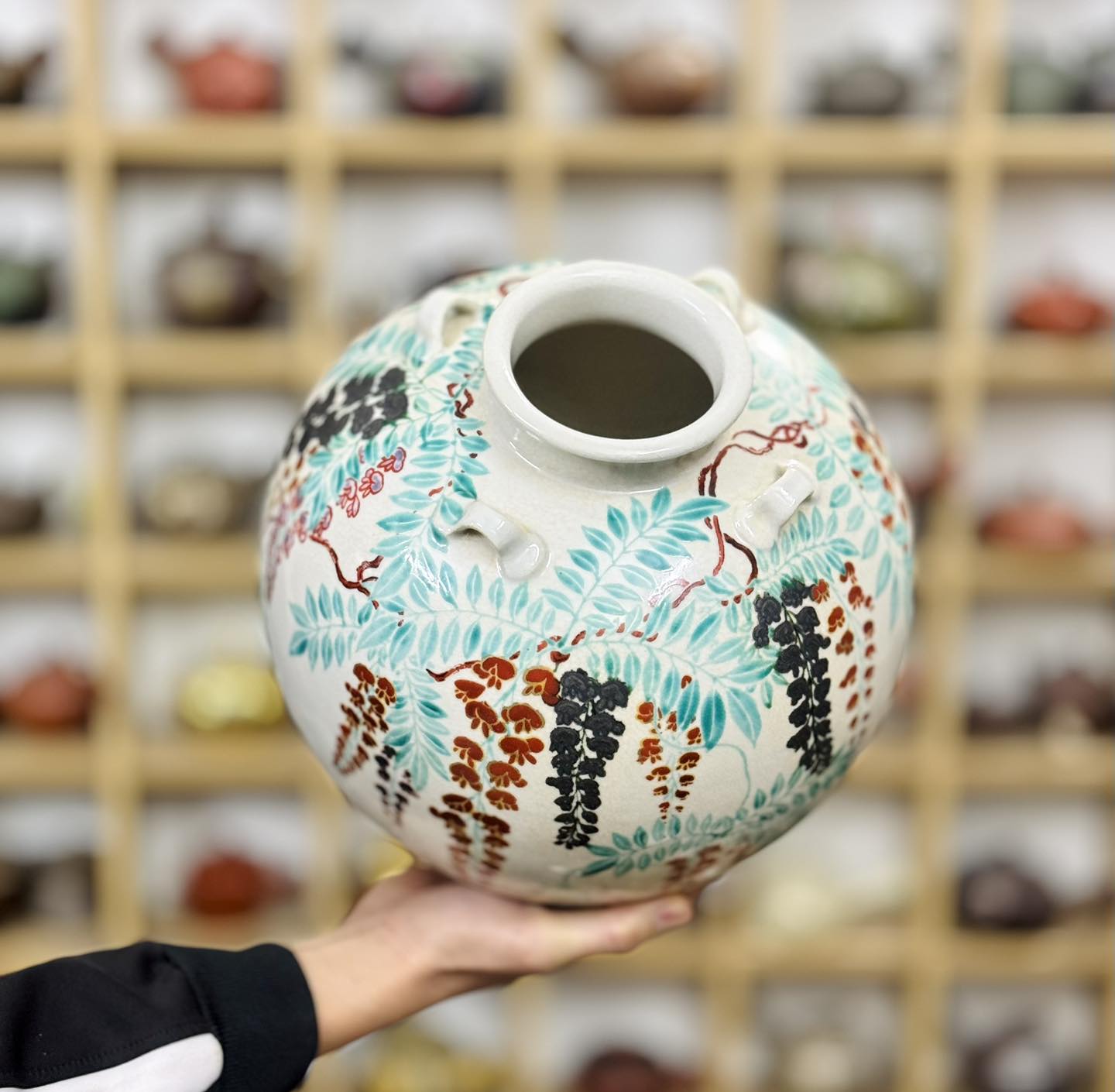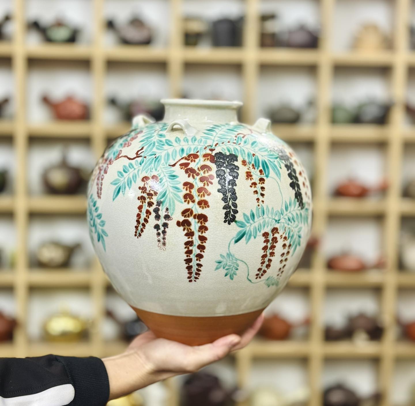Bình gốm Nhật Kyo Vẽ Hoa Tử Đằng Đẹp