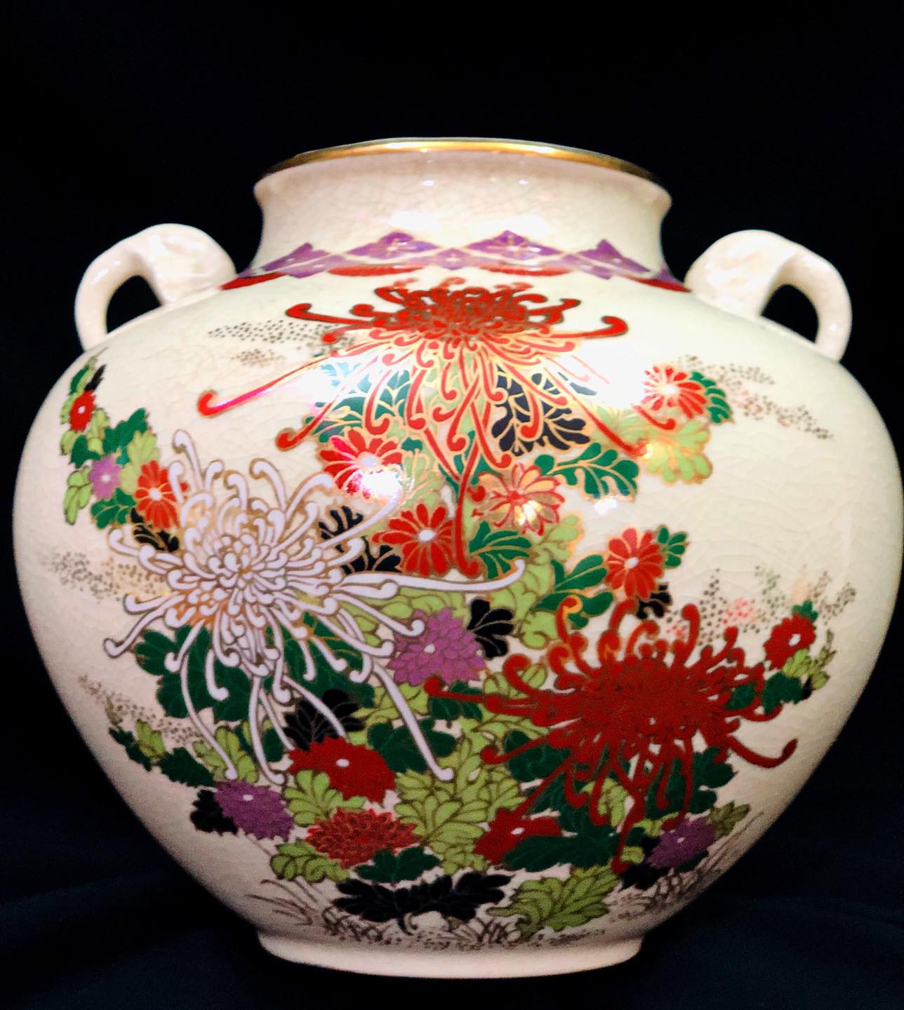 – Bình vẽ tay vẽ vàng hoạ tiết hoa Cúc Đại Đoa tuyệt đẹp.