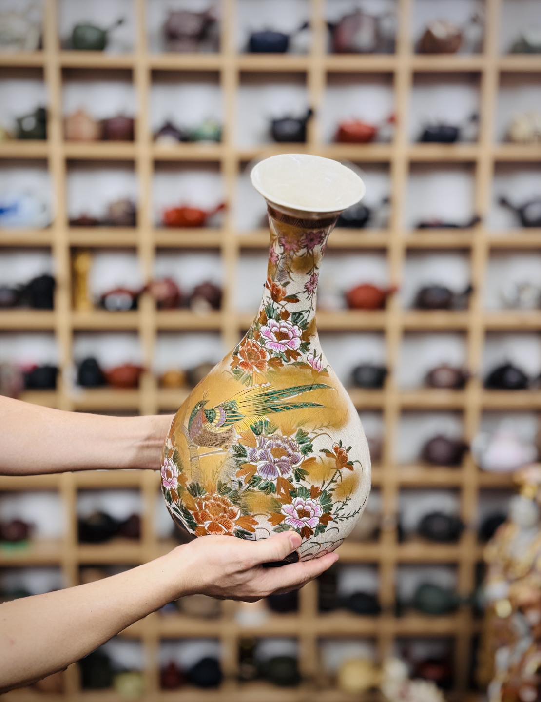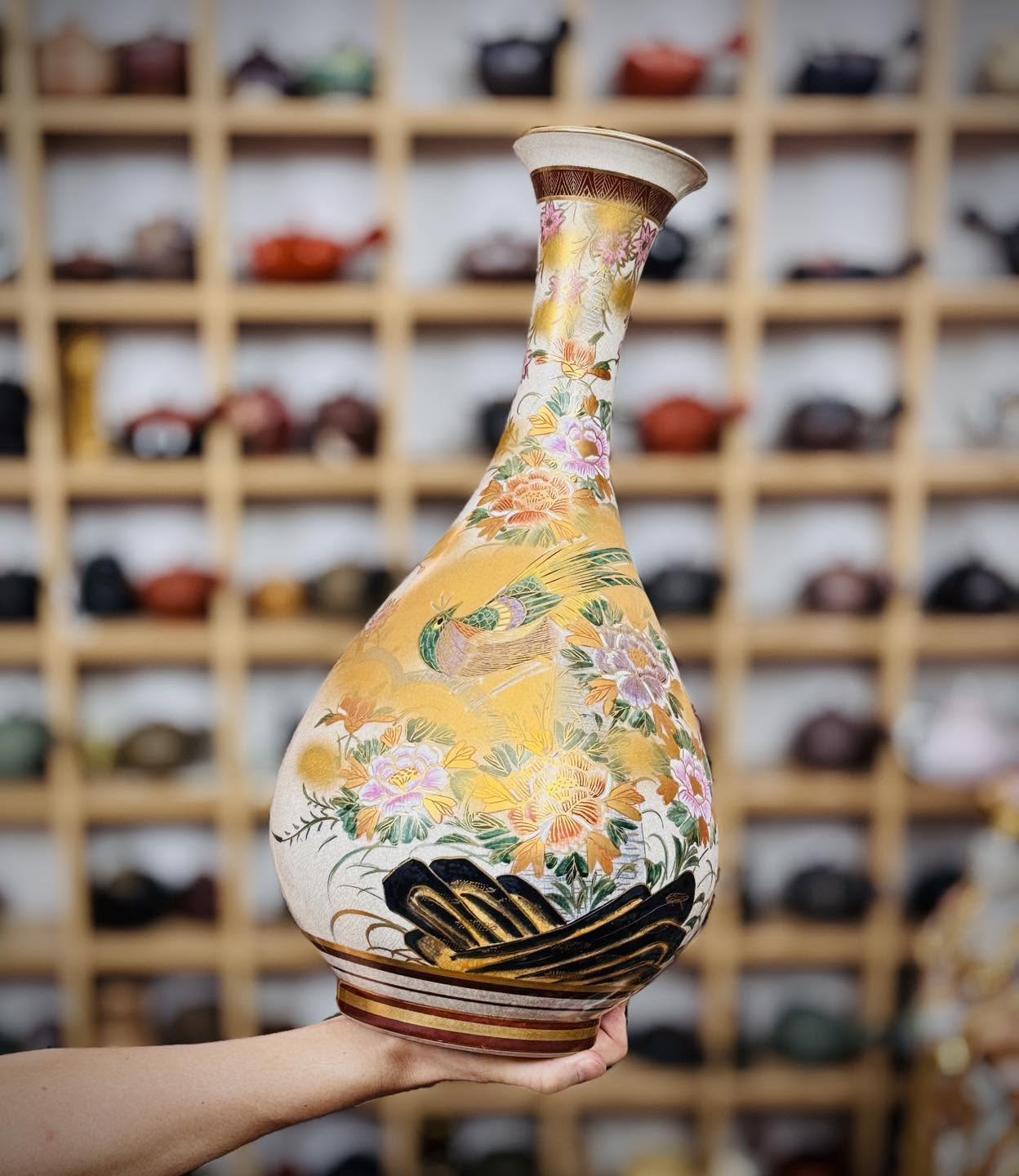 Bình Satsuma vẽ vàng – Chim trĩ đáo mẫu đơn rất đẹp tiệm mời các bác sưu tầm