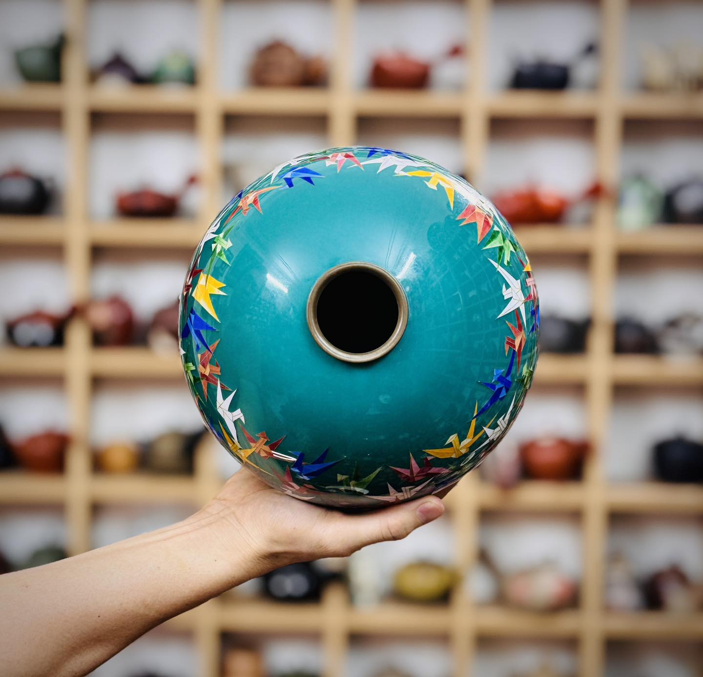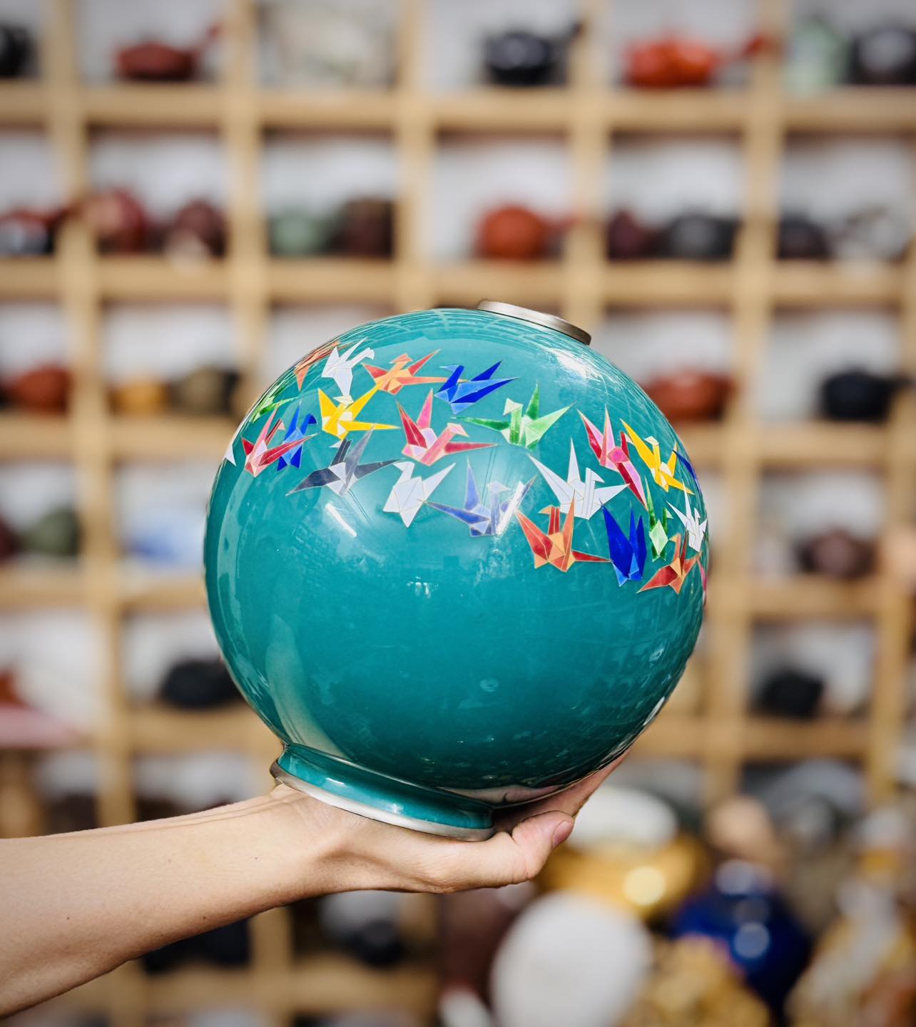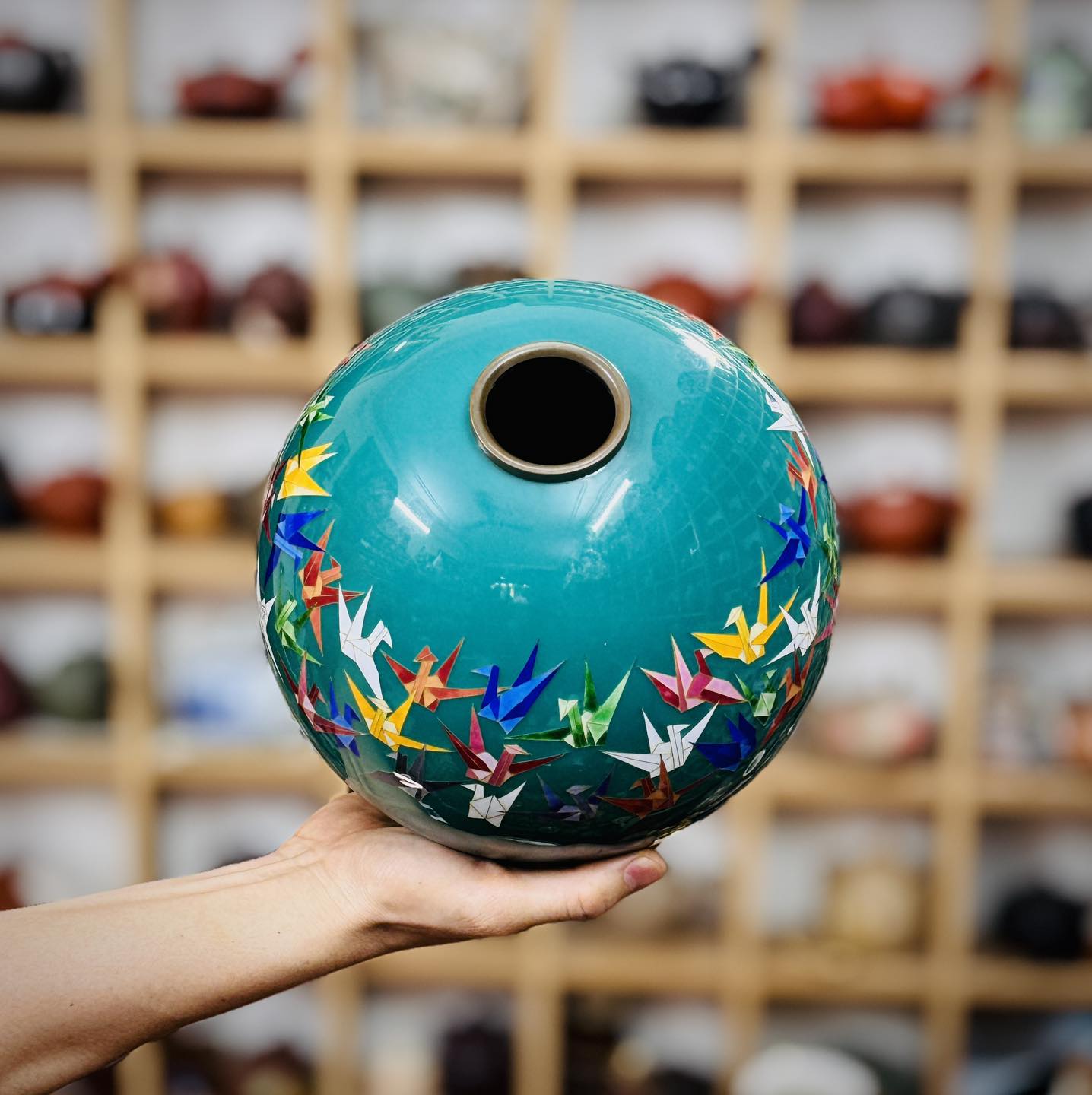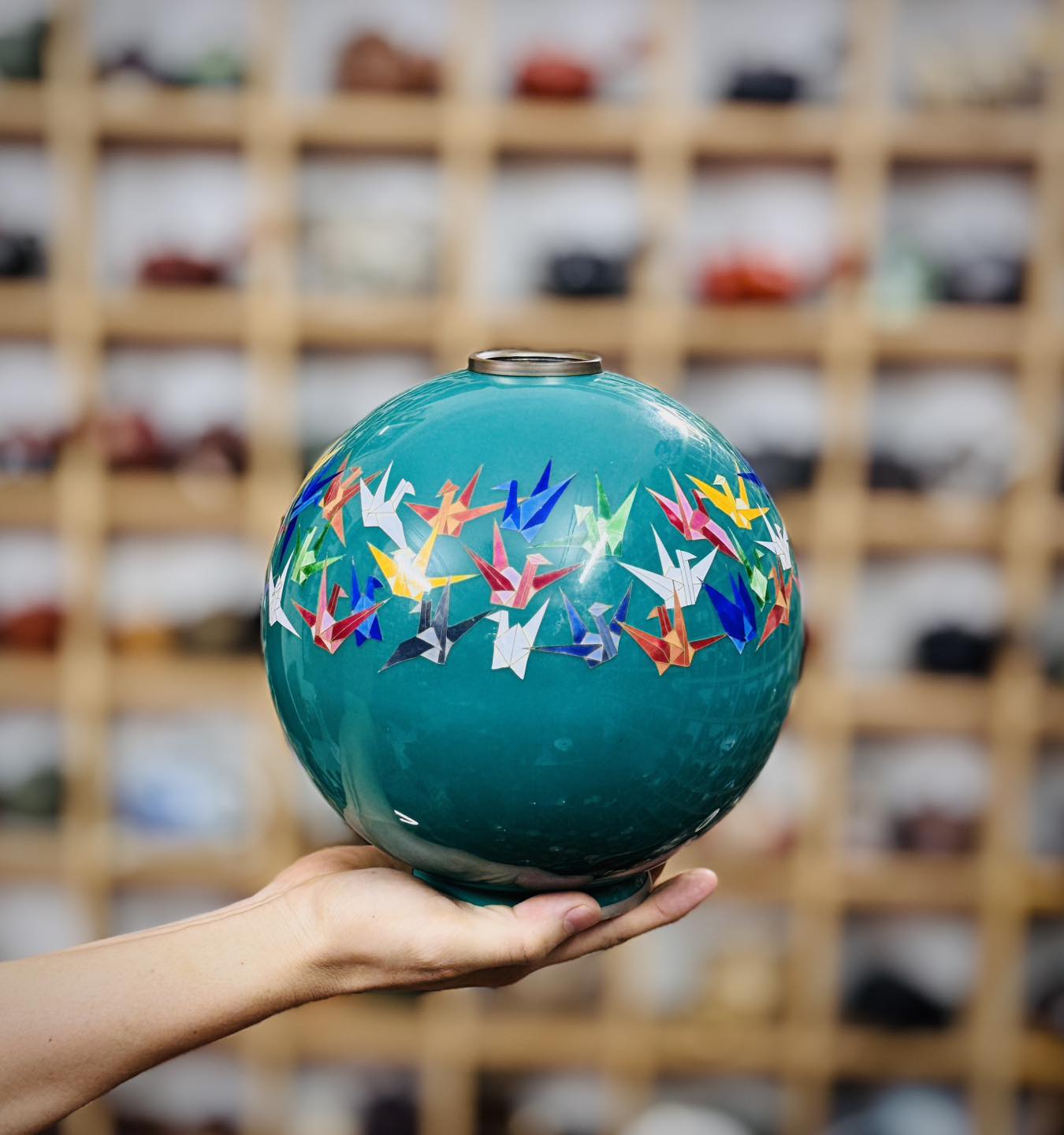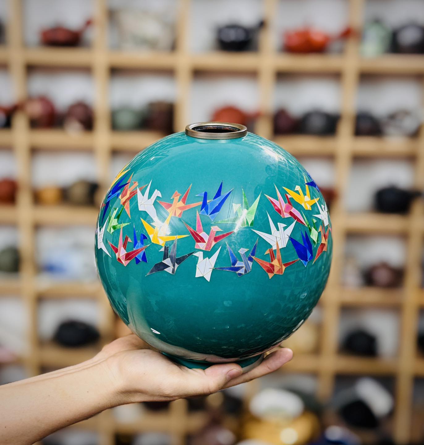 Một chiếc bình Shippo dáng hút lộc cẩn hạc giấy đẹp độc đáo mời các bác ngắm và sưu tầm