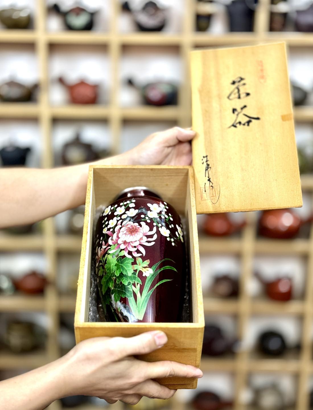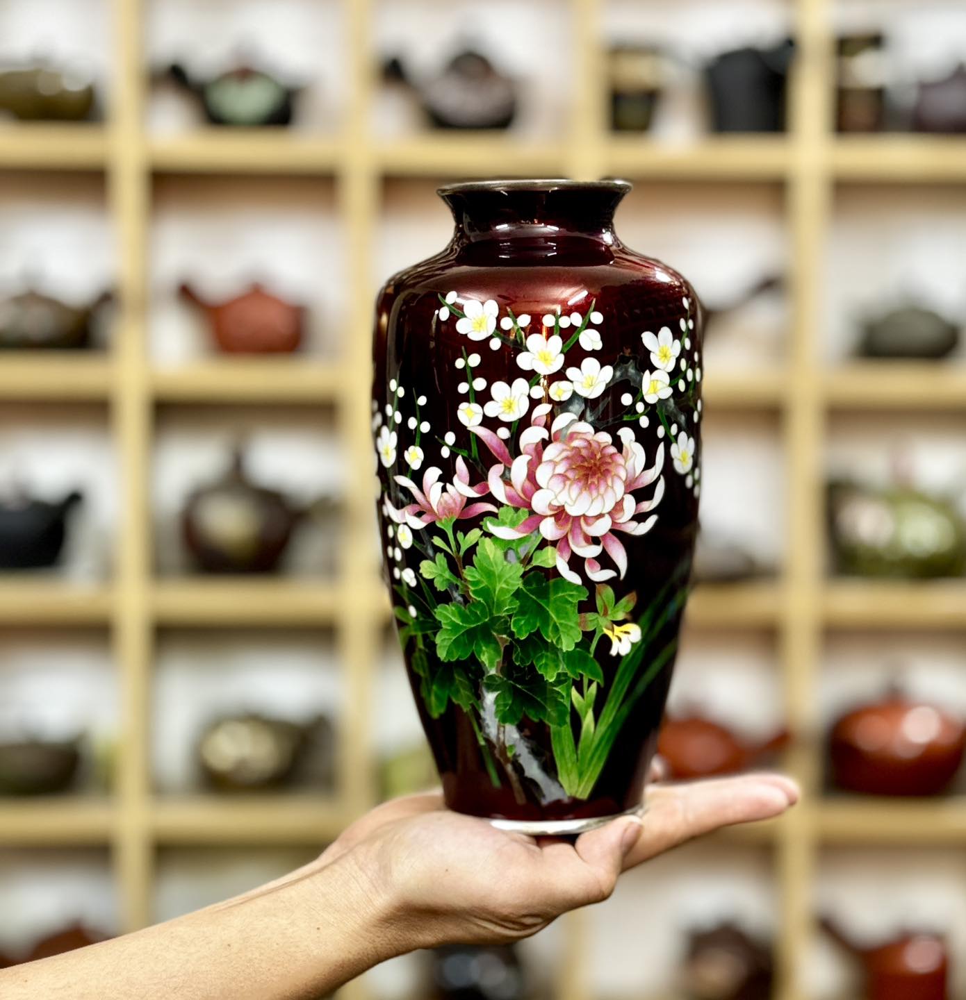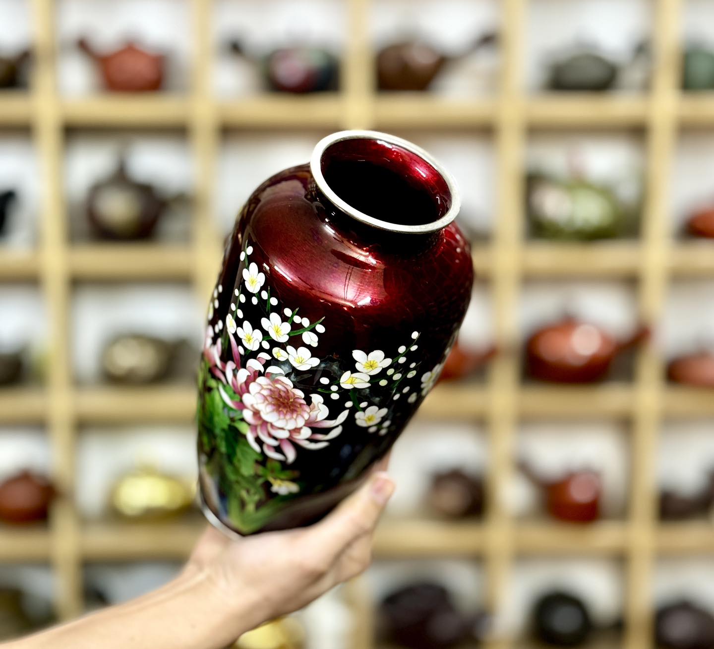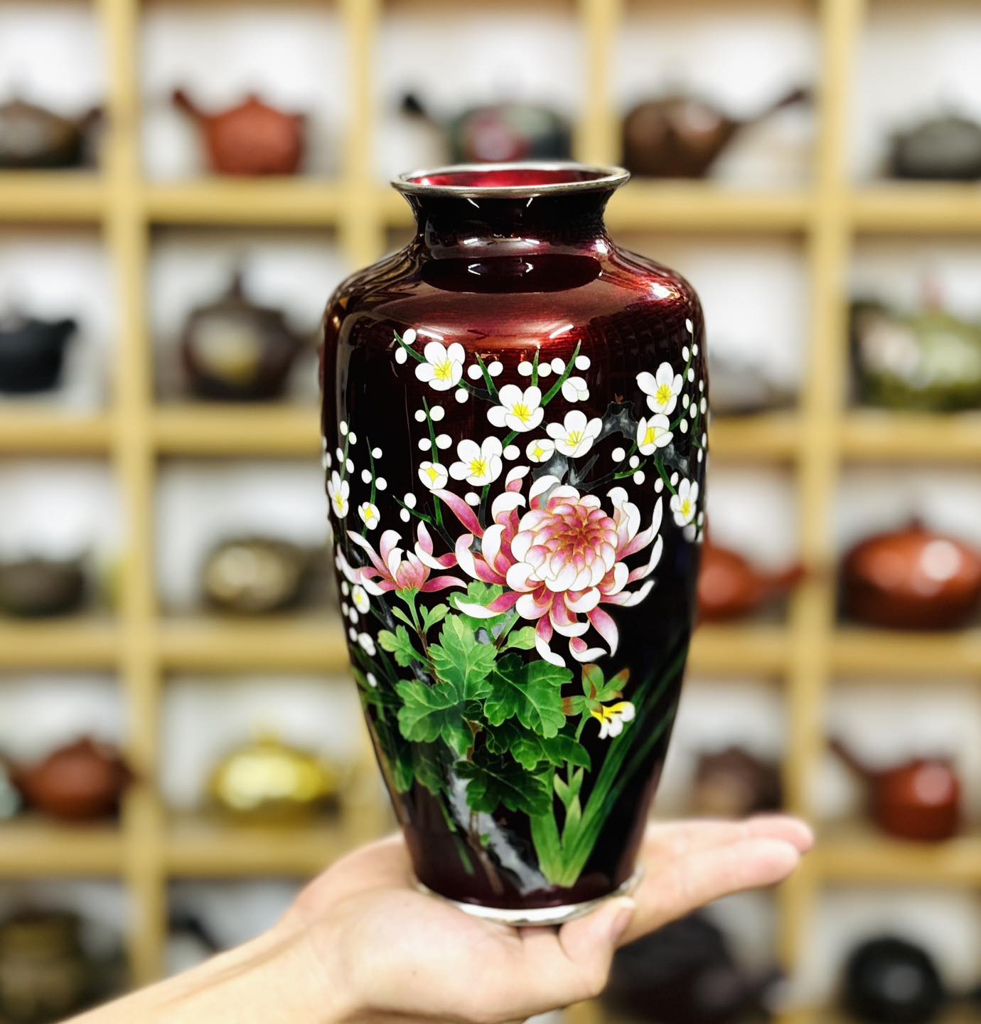 Bình Shippo đỏ cẩn Đại Đoá và Hoa Sakura Nhật Bản đẹp