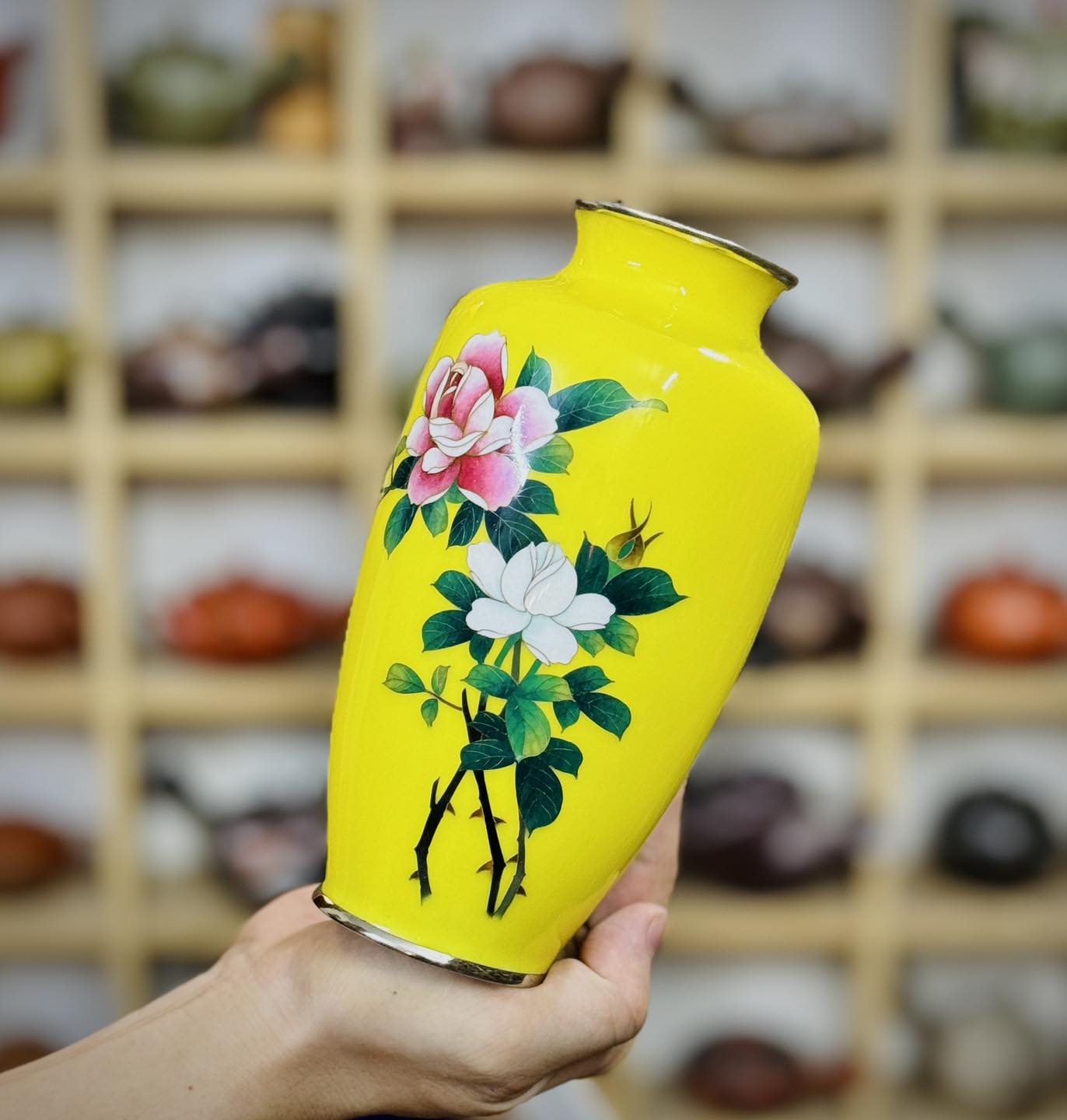 – Đối với nghệ thuật chế tác Shippo, để lên được sắc vàng hoàng kim này rất khó. Vì vậy mà những bình Shippo vàng hoàng kim luôn hiếm có với giá trị sưu tầm cao.
