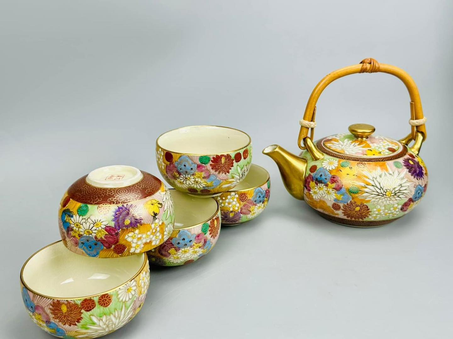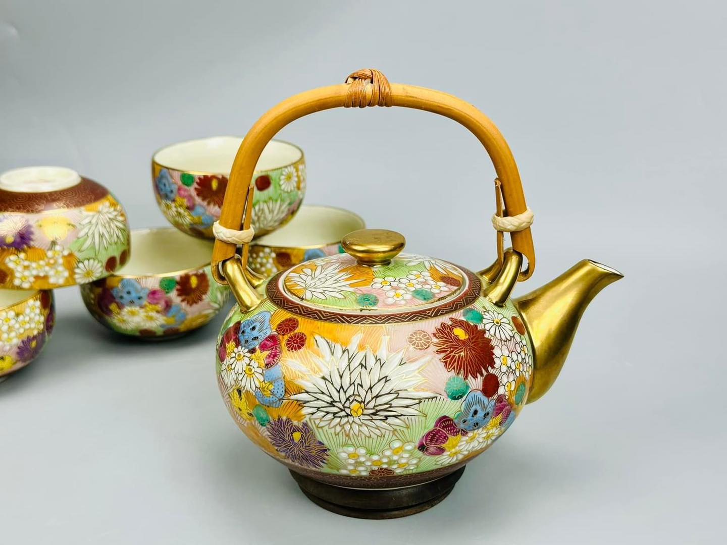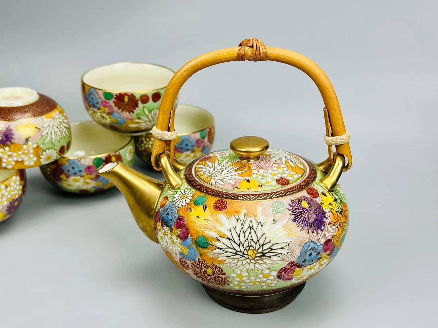 Bộ trà Bách Hoa kutani Nhật Bản dáng quai xách đẹp