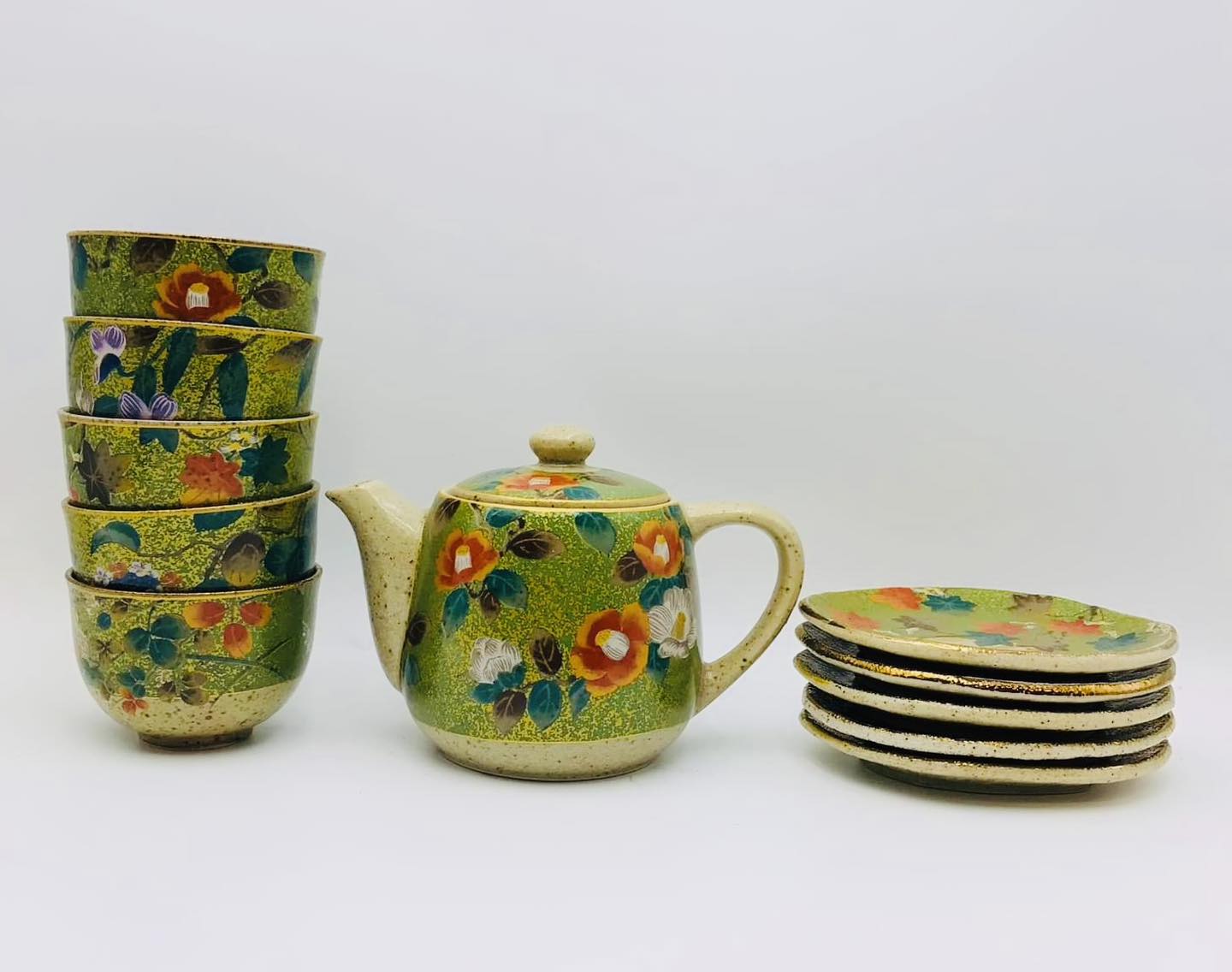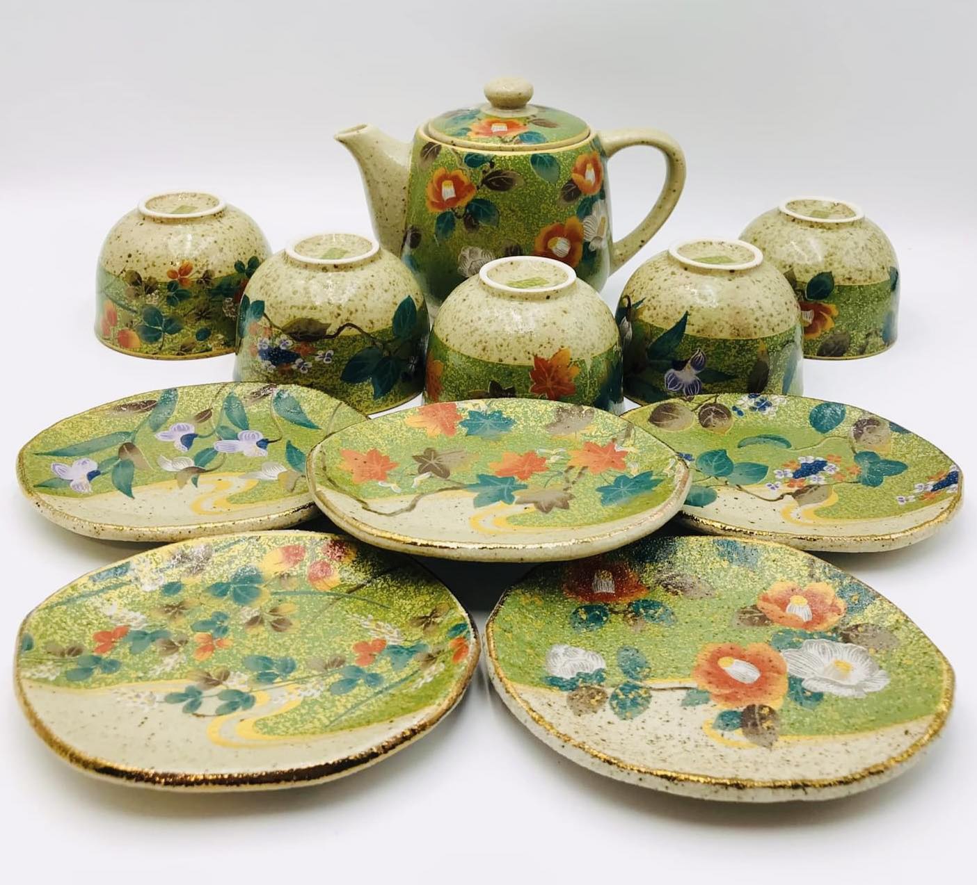 – Bộ trà gồm 11 món: 1 ấm + 5 chén trà + 5 đĩa lót