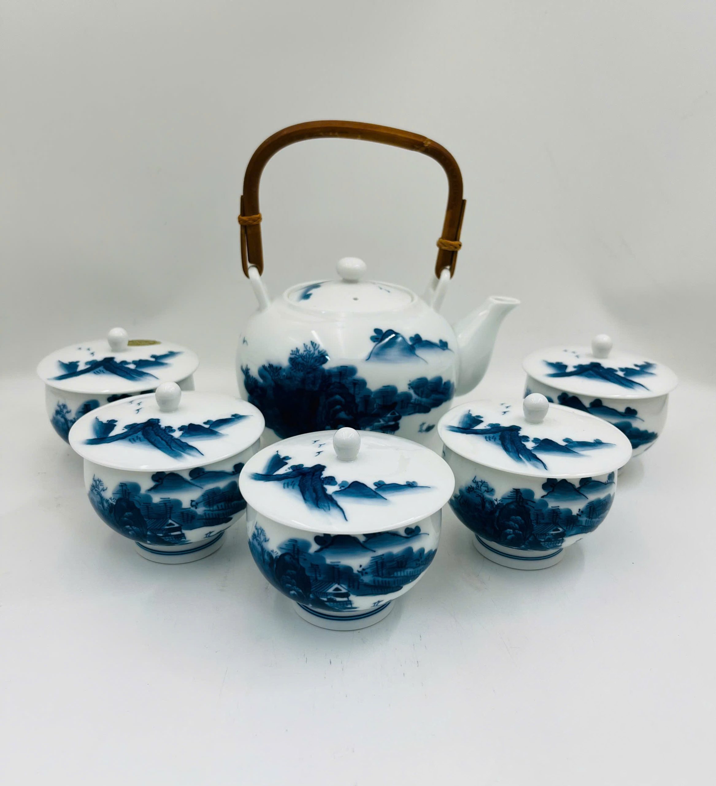 Bộ trà men lam vẽ tay Arita Nhật Bản