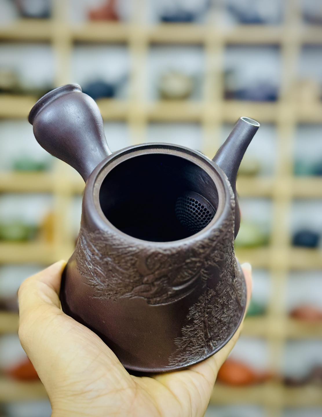 Một chiếc ấm Banko xưa khắc tay cội tùng rất đẹp mời các bác ngắm và sưu tầm ạ