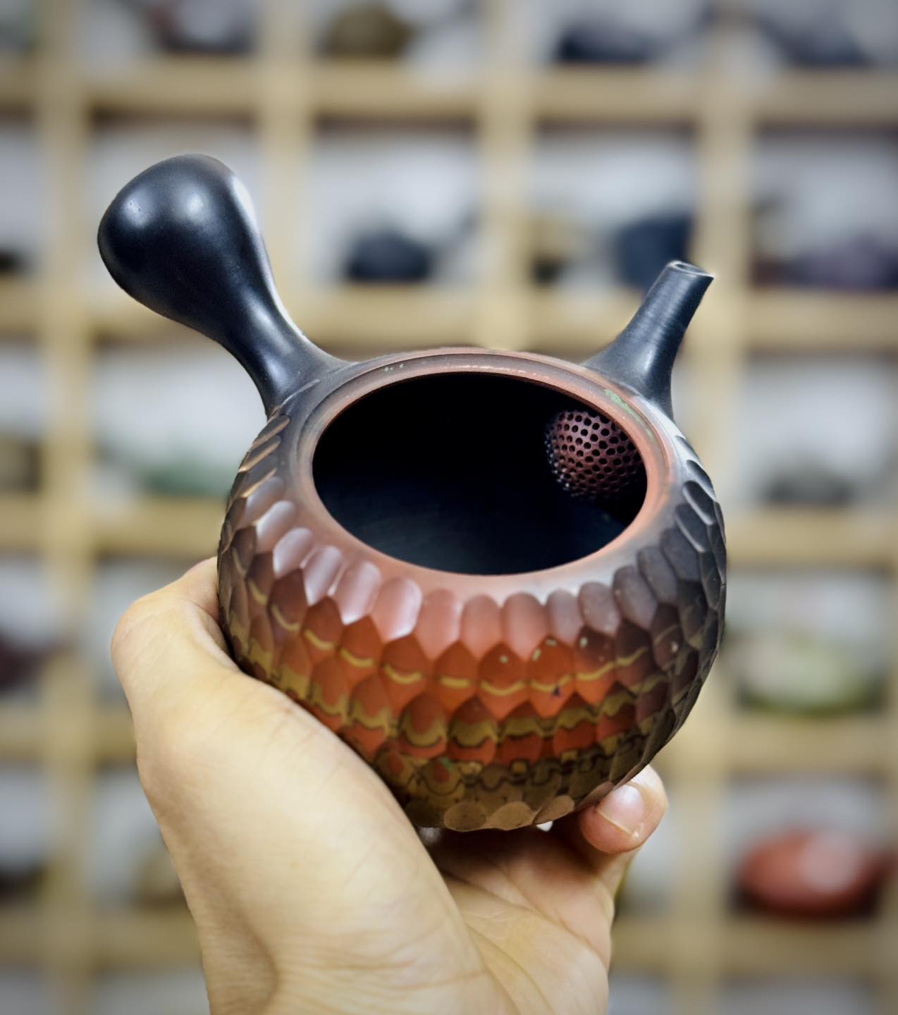 Chiếc ấm trà Tokoname Yohen vác cạnh đẹp xuất sắc