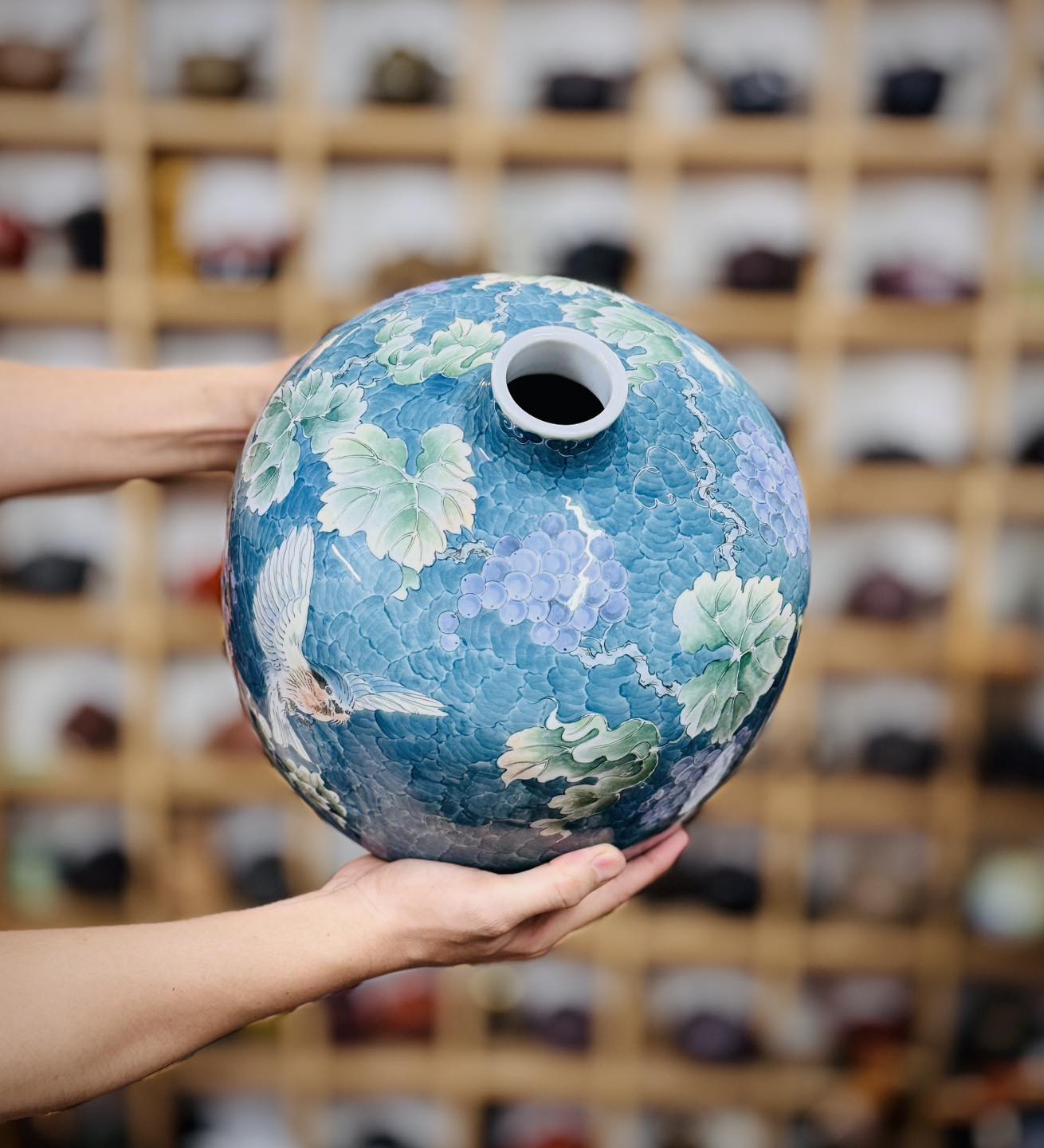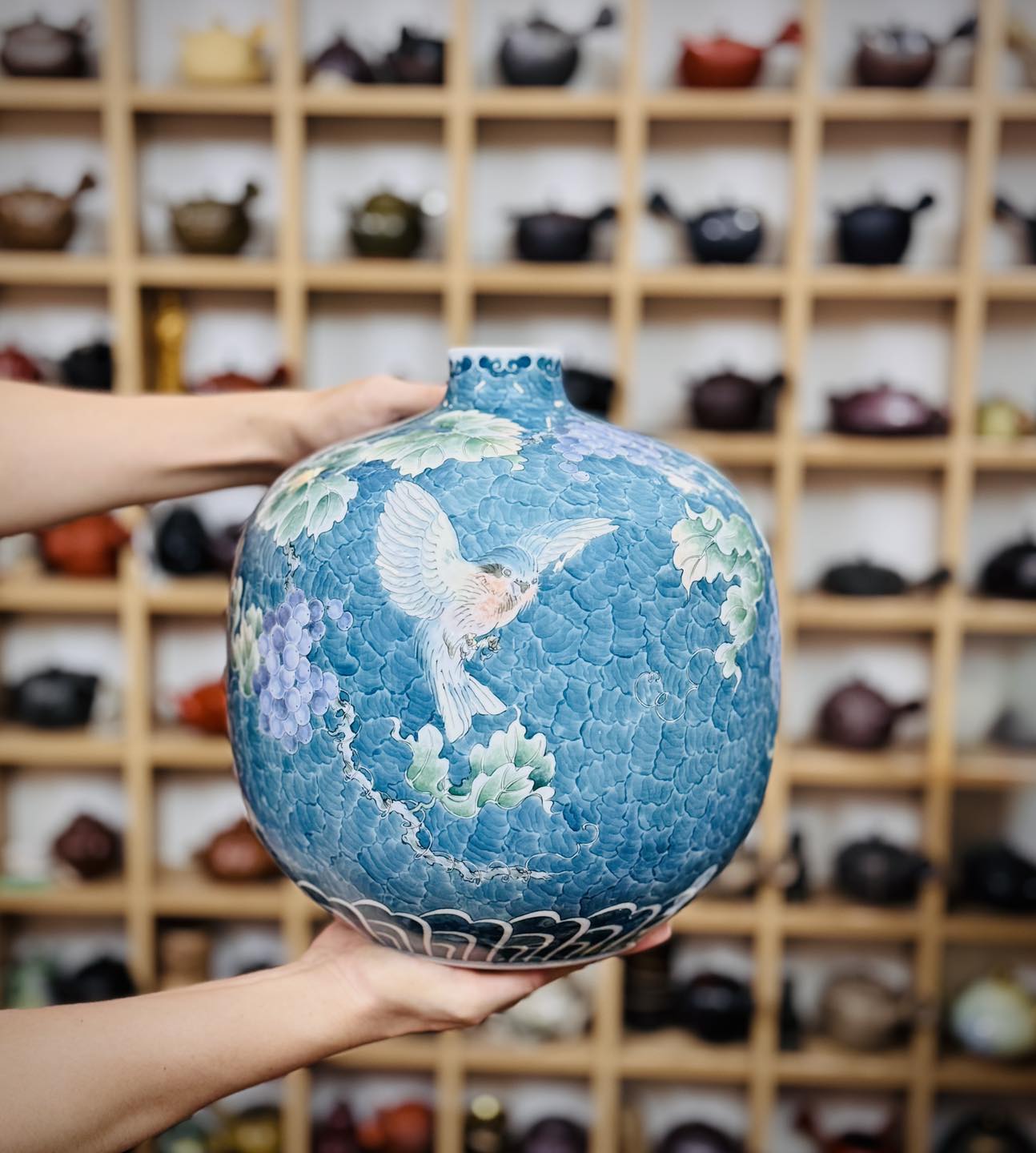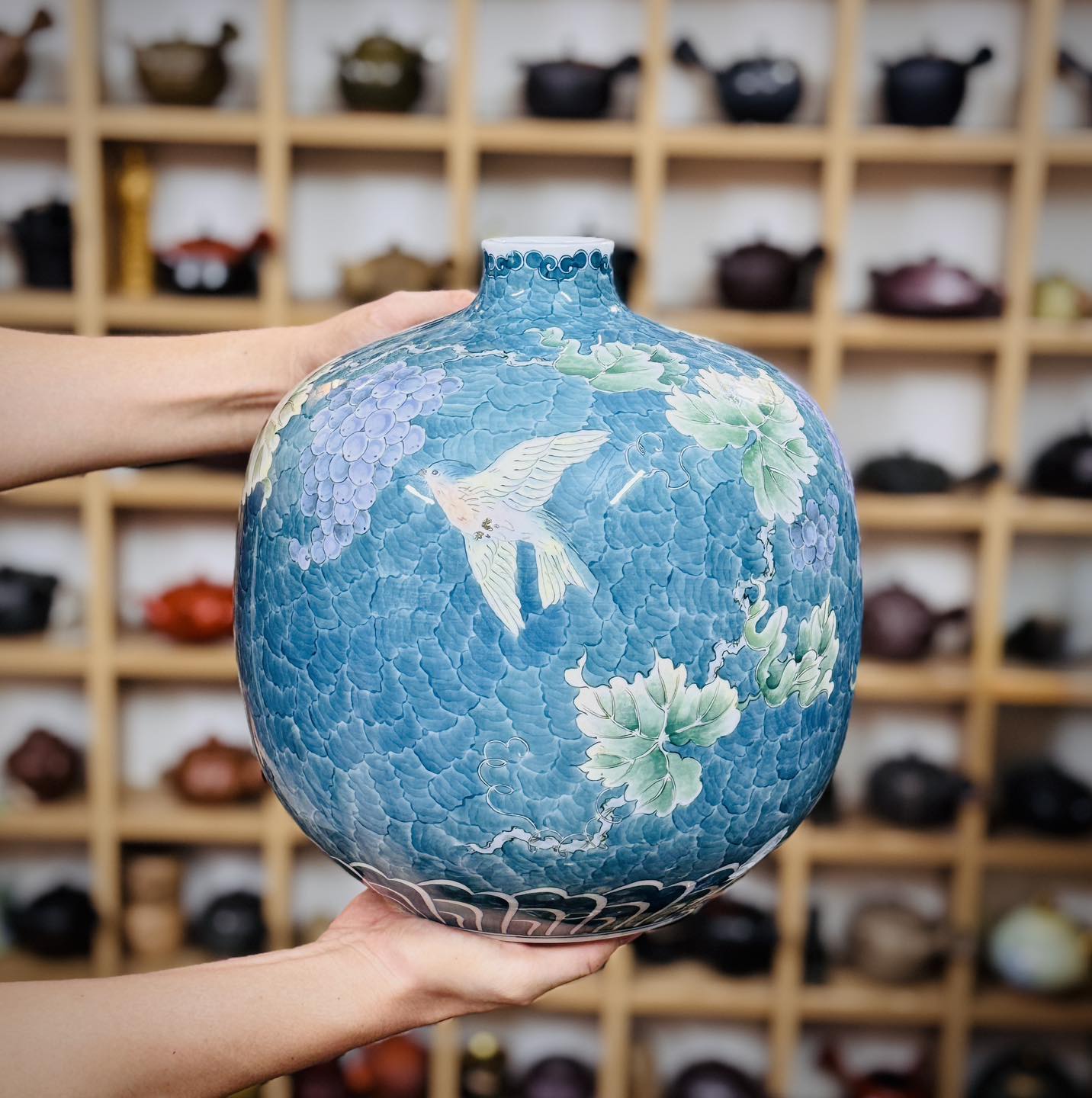– Bình hoạ tiết vẽ tay chim, nho phú quý full bình rất đẹp và sang