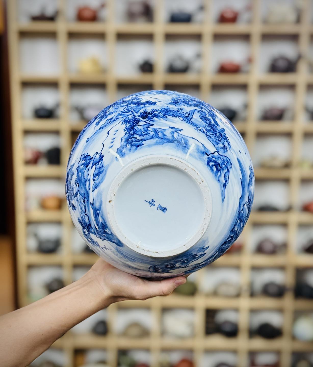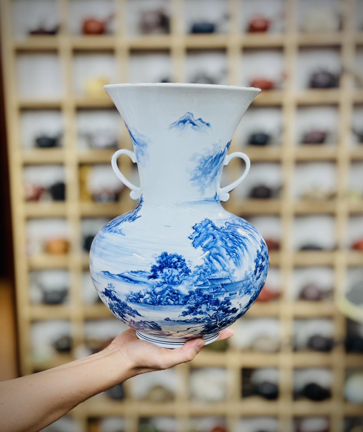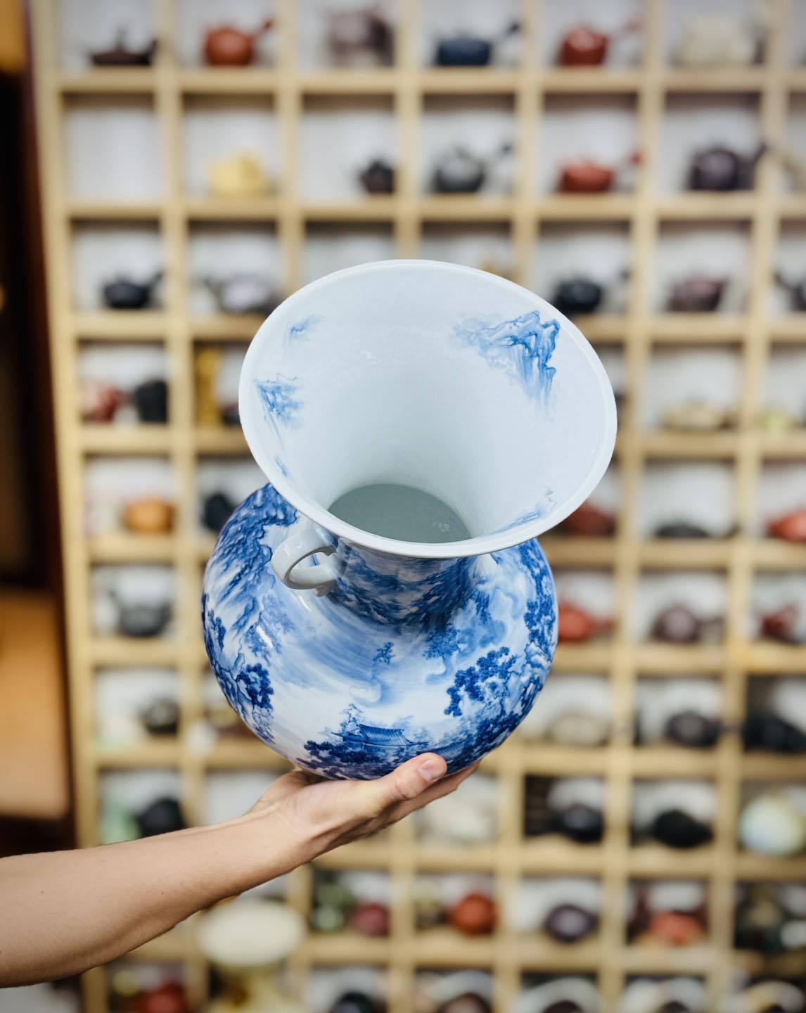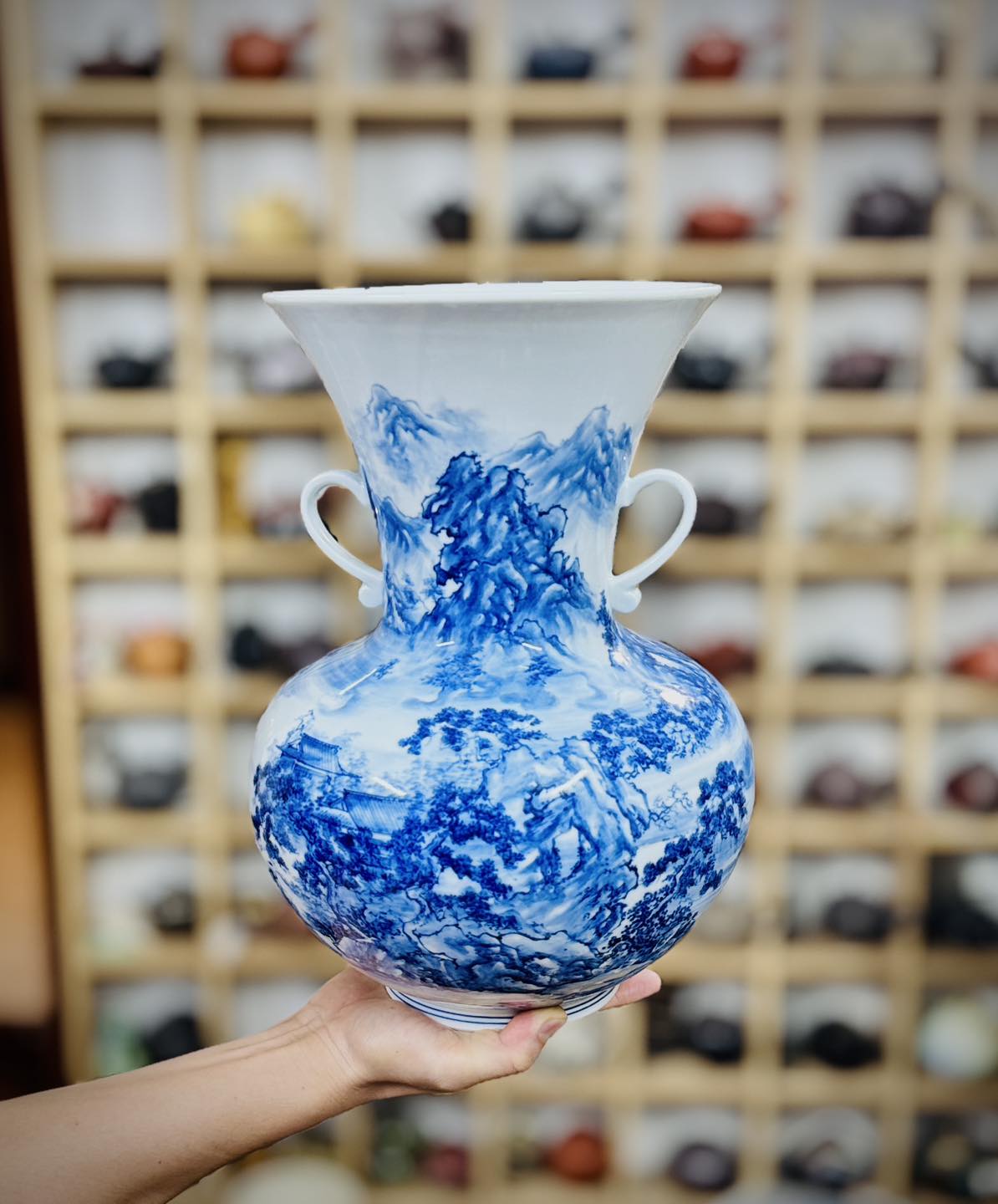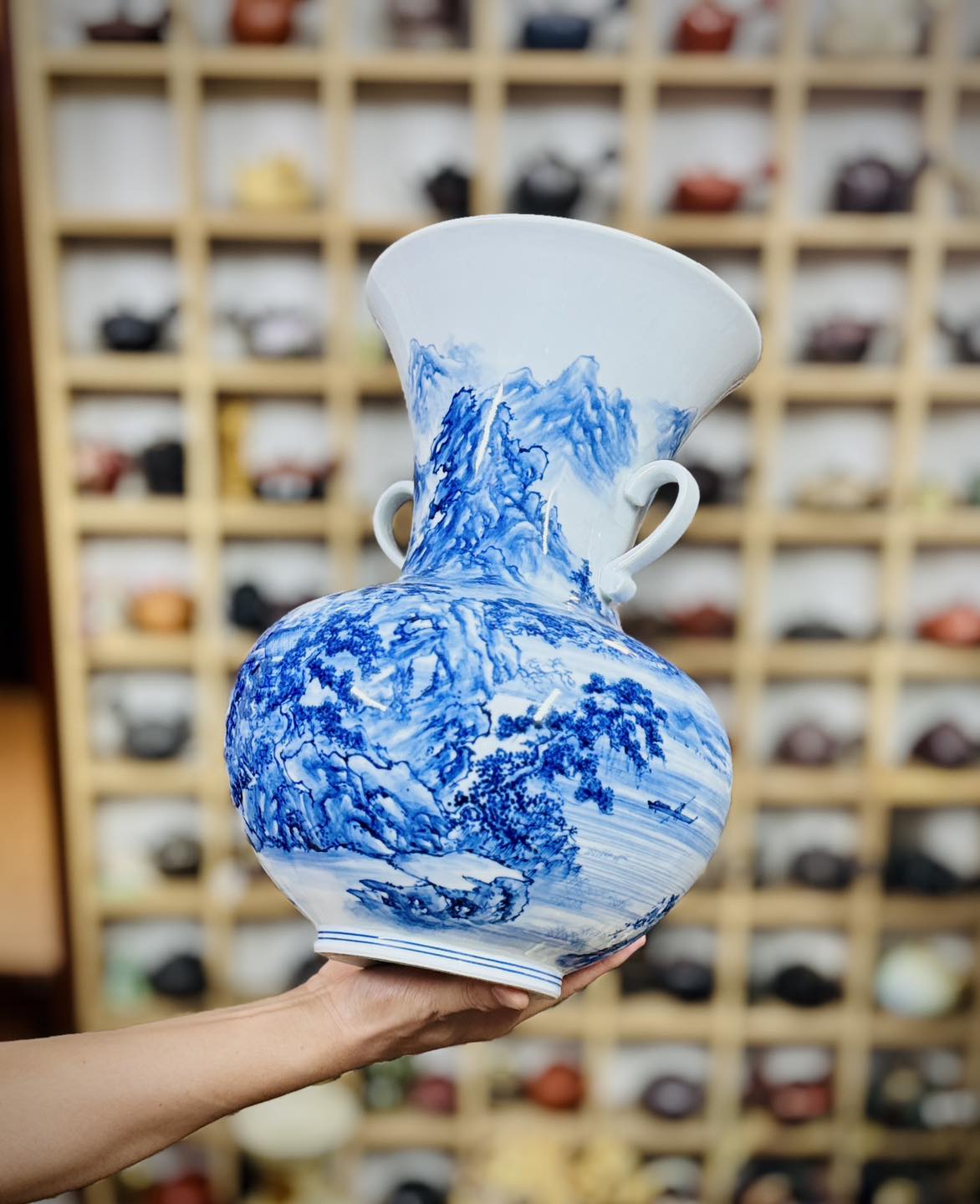 Bức tranh Sơn Thuỷ Tùng Đình men lam đc nghệ nhân vẽ trên chiếc bình rất đẹp mời các bác ngắm và sưu tầm ạ