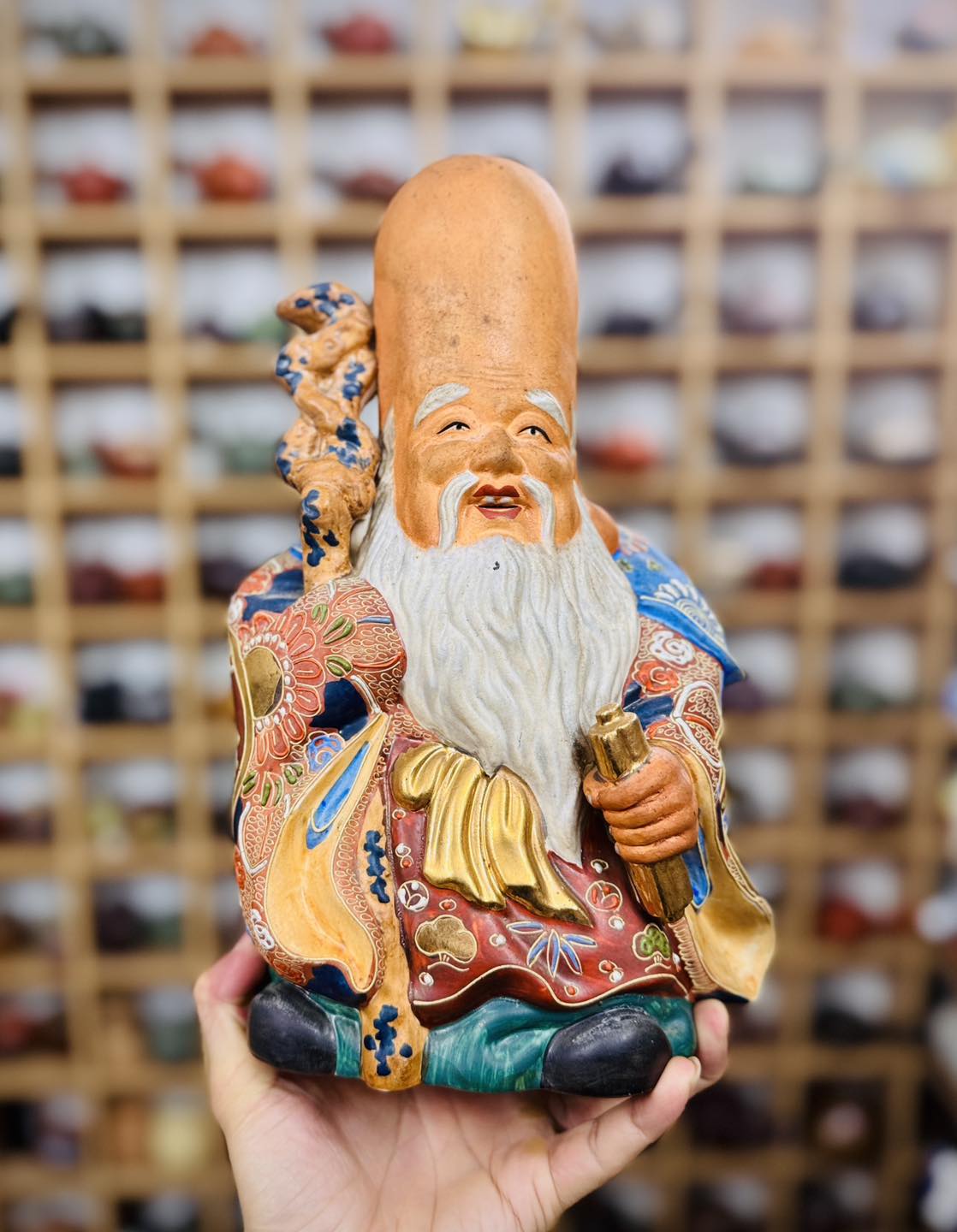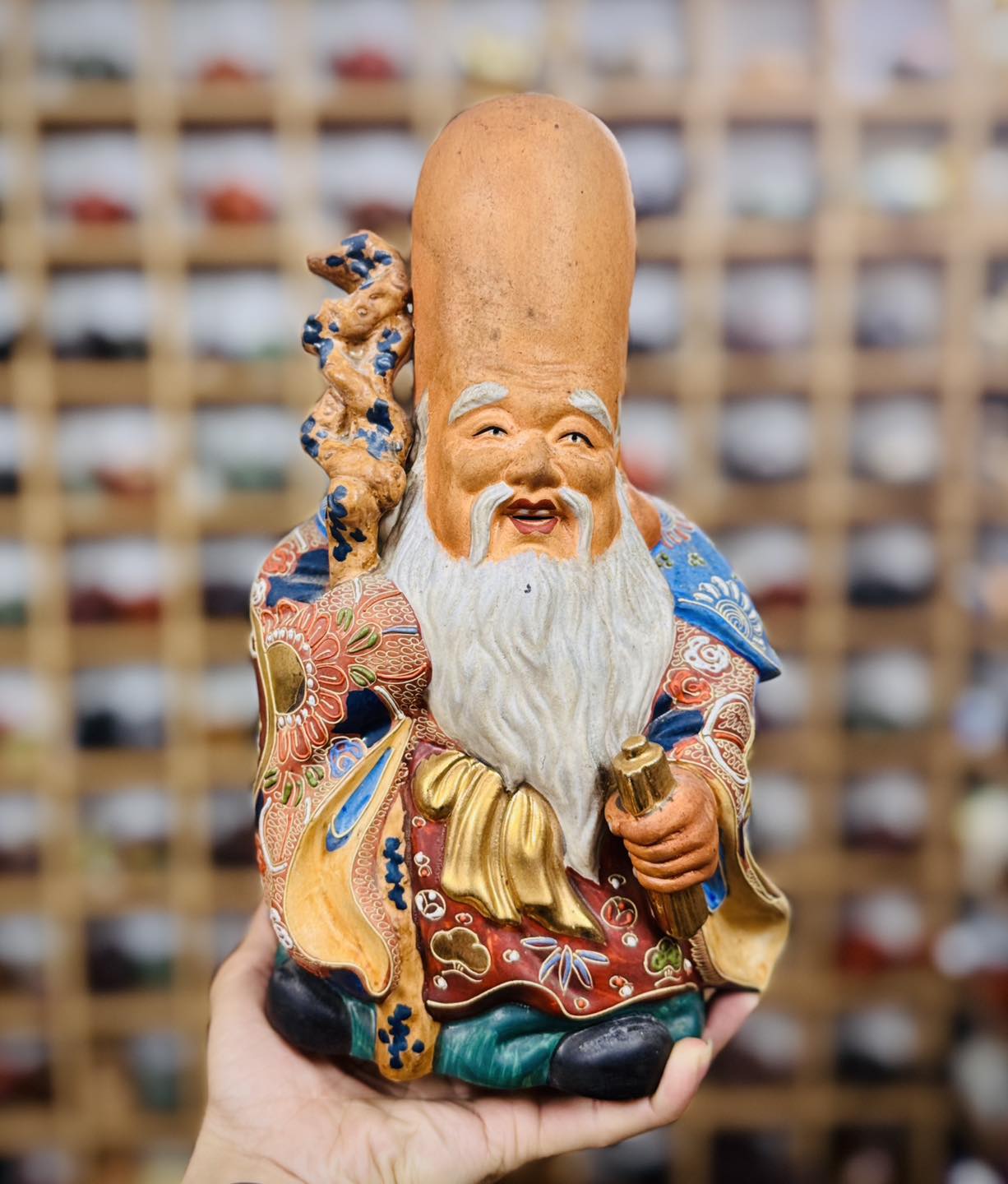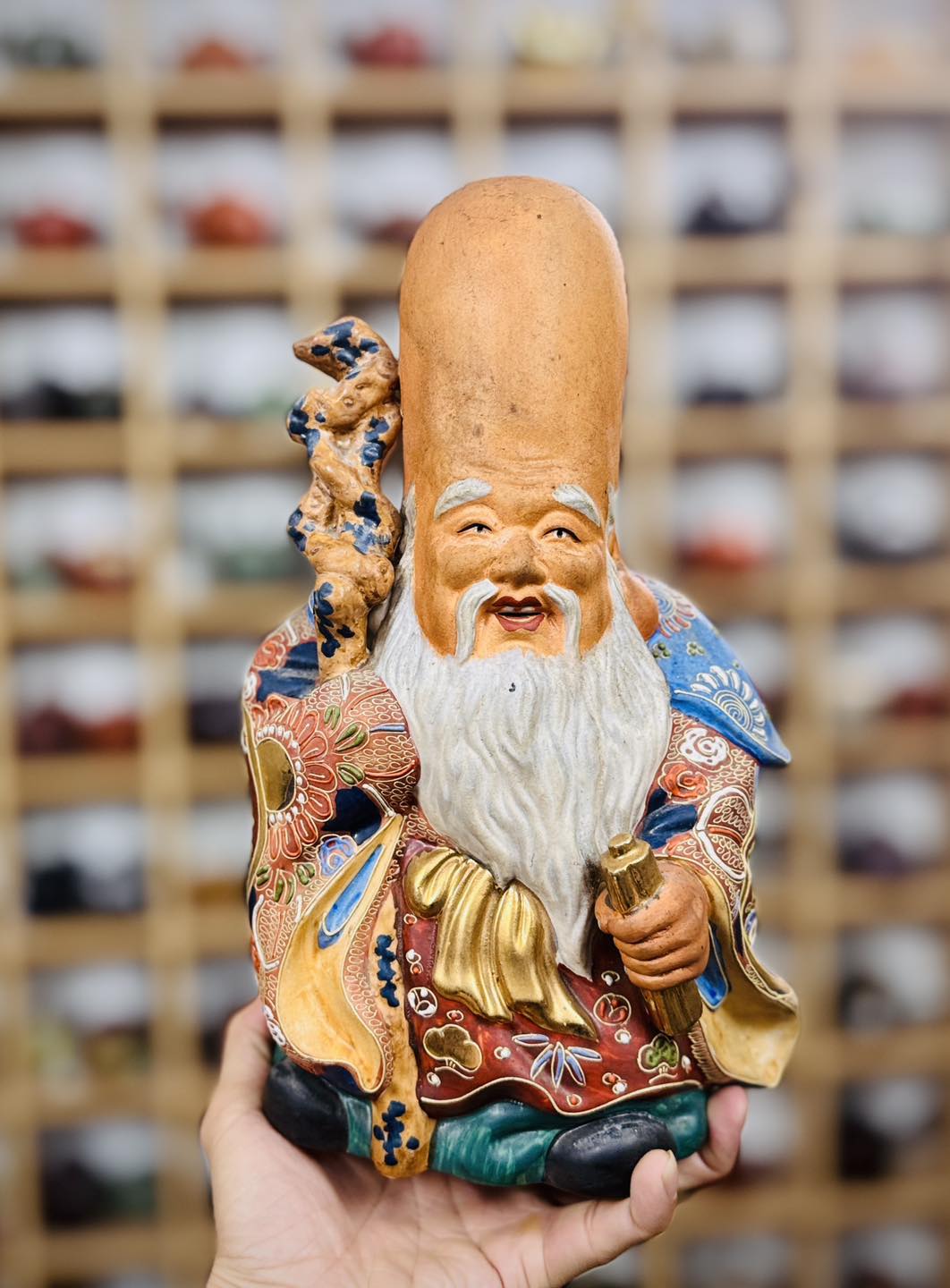 Cụ thọ lão nhân Fukurokuju men gấm vẽ vàng tuyệt đẹp mời các bác ngắm và hữu duyên