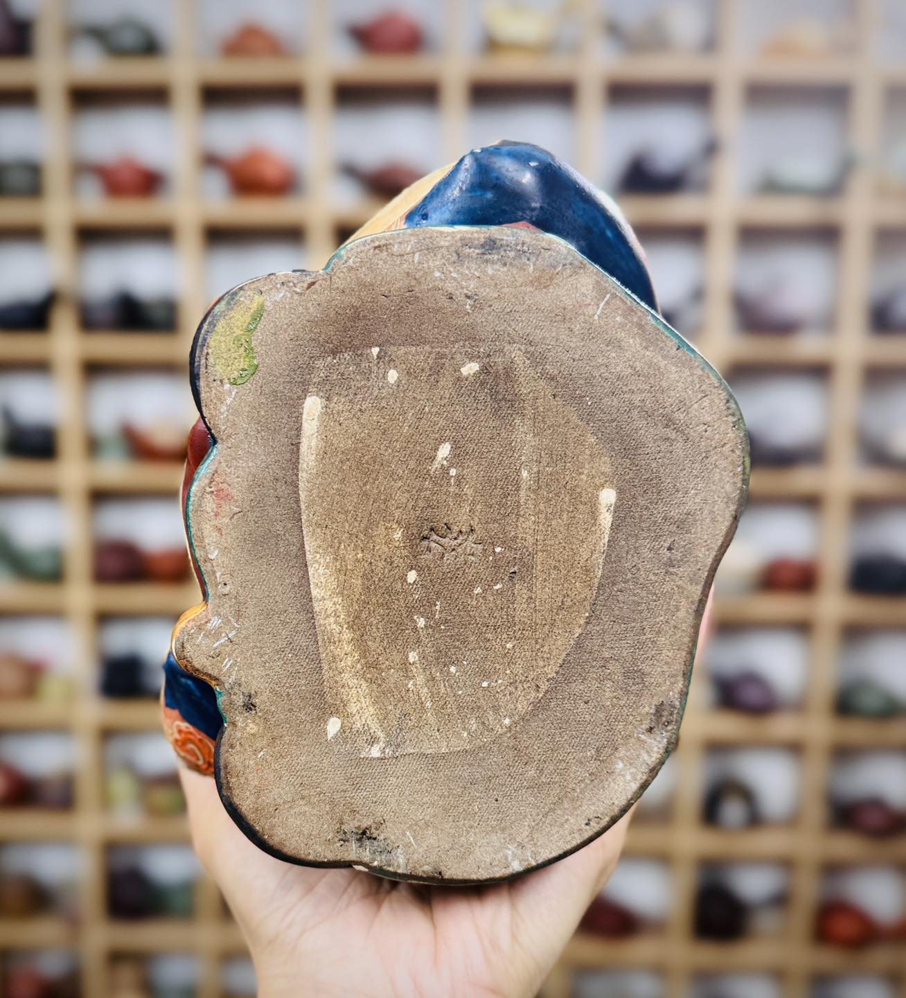 – Cụ thọ chế tác thủ công, men gấm vẽ vàng nổi cộm