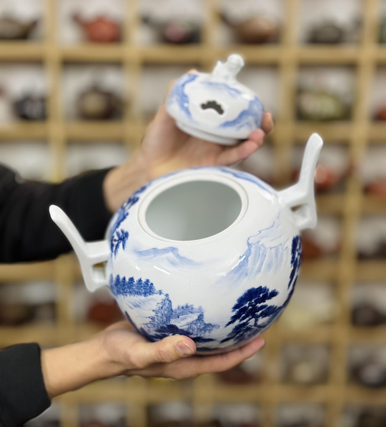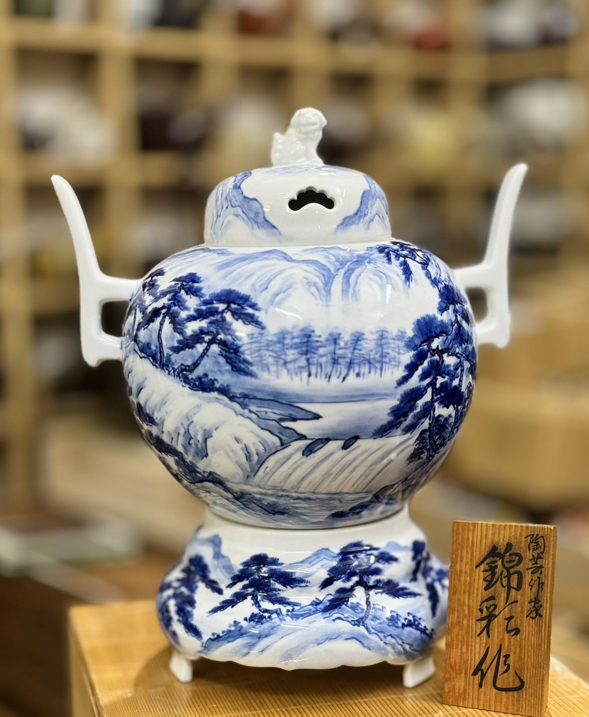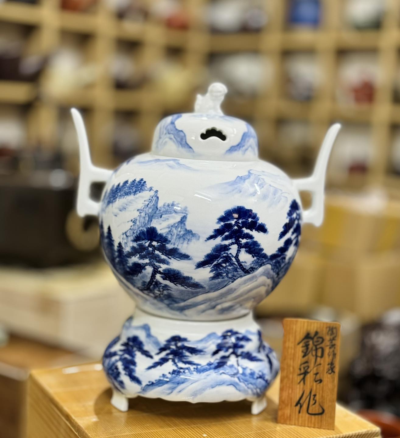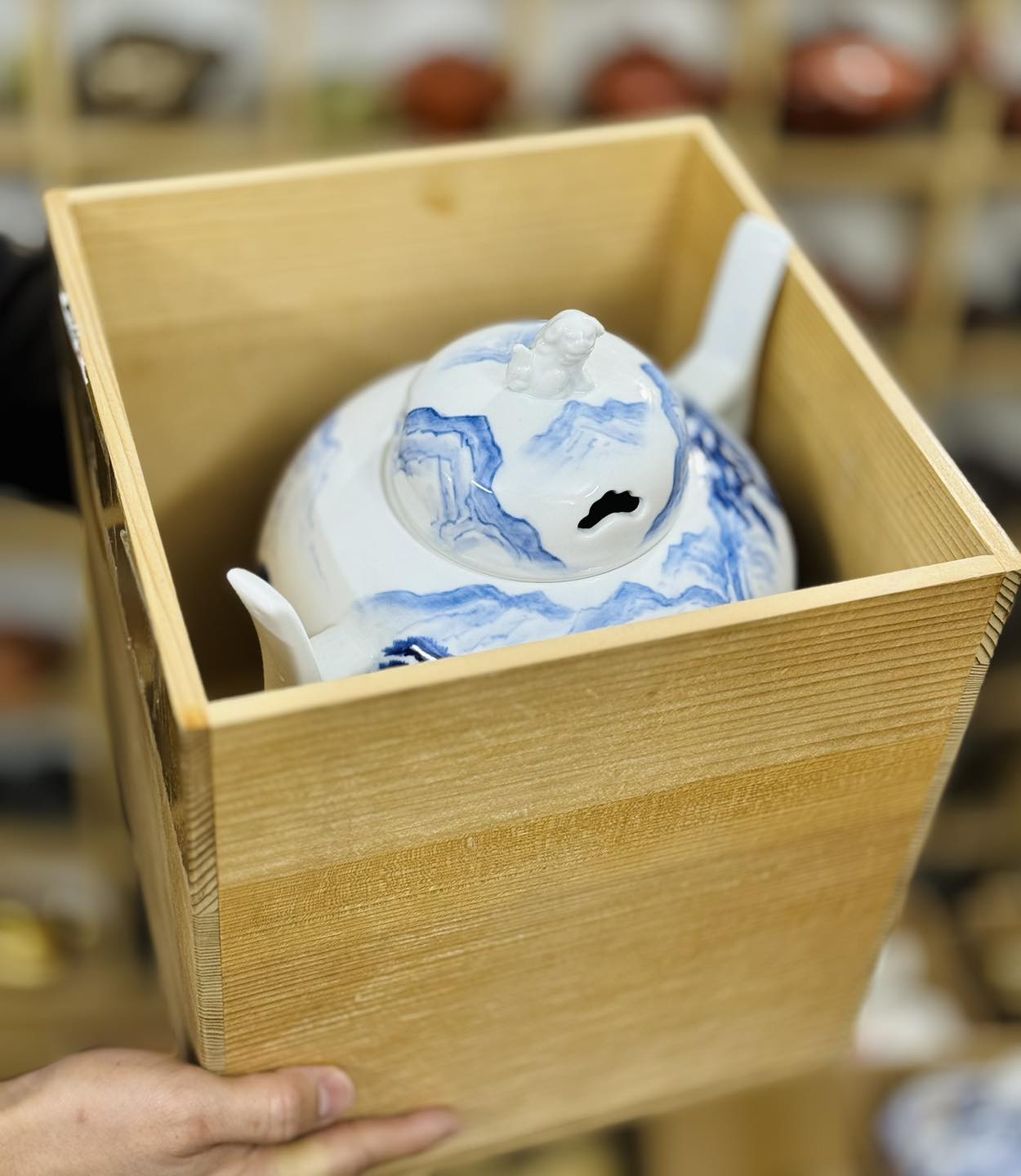 – Hoạ tiết vẽ tay Sơn Thuỷ tứ diện rất đẹp, đỉnh trên là linh vật Kỳ Lân vật phẩm phong thuỷ