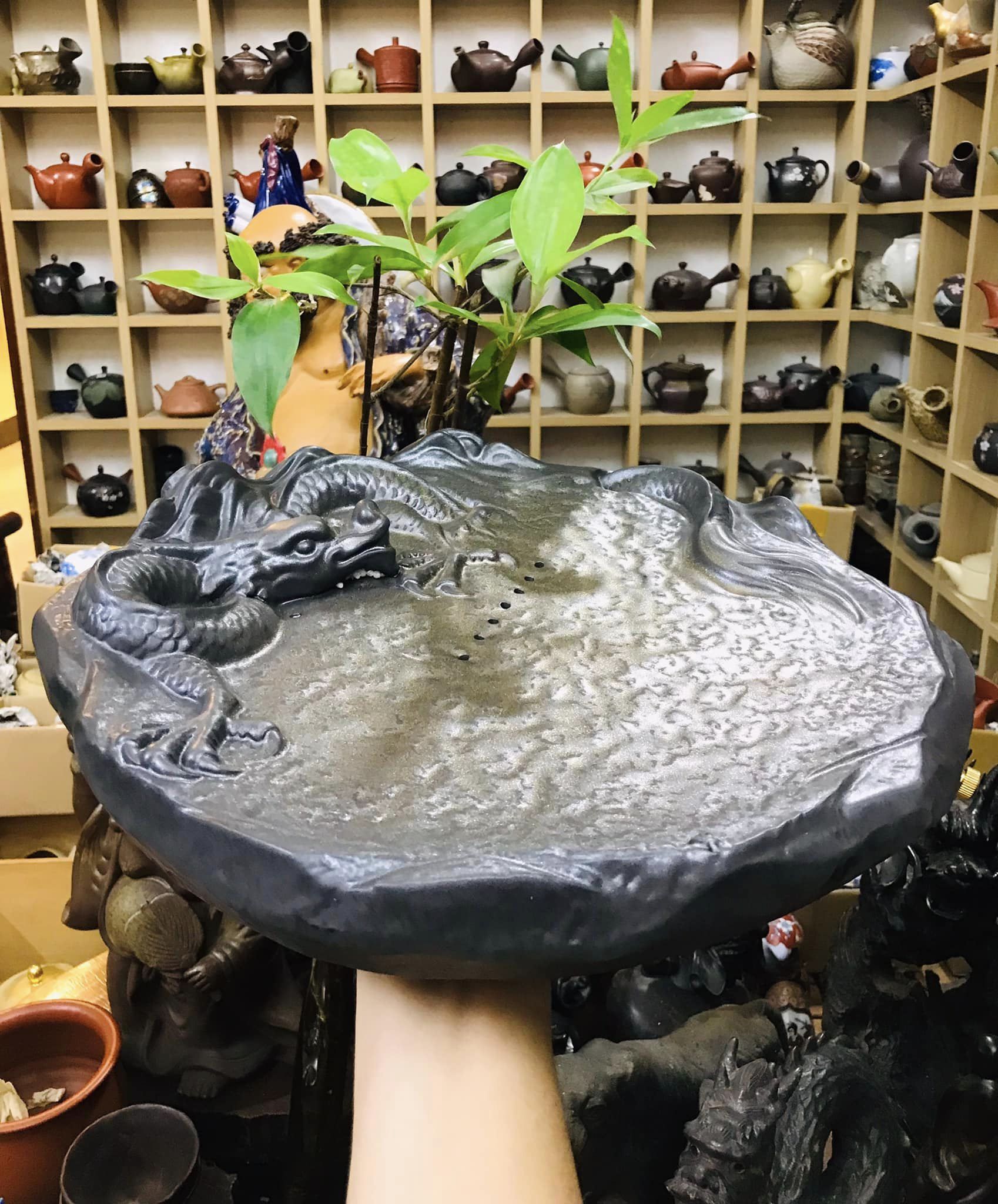 Khay trà gốm long ẩn