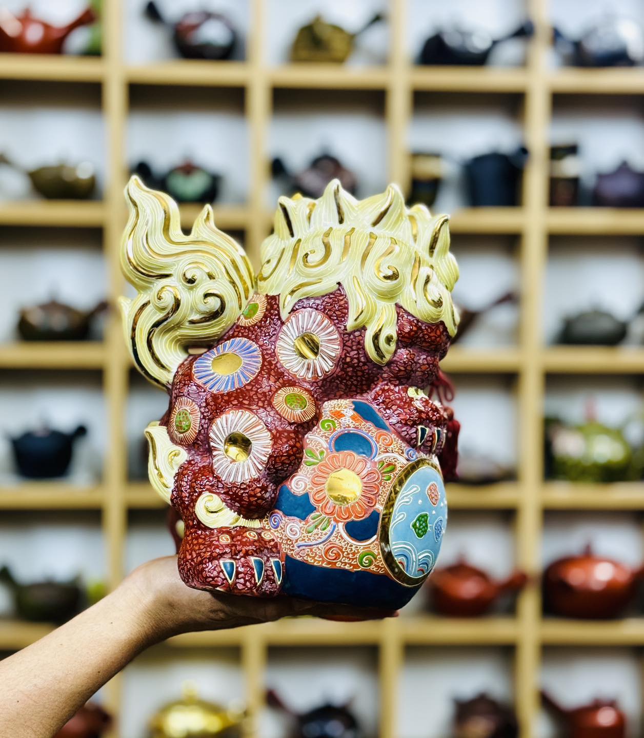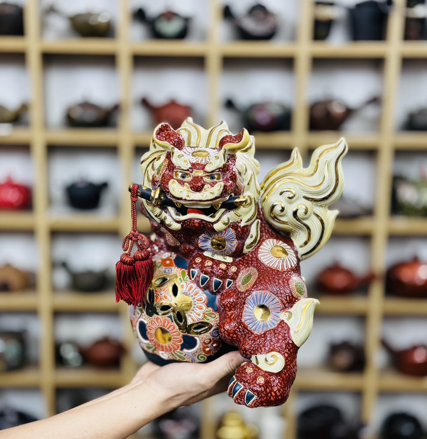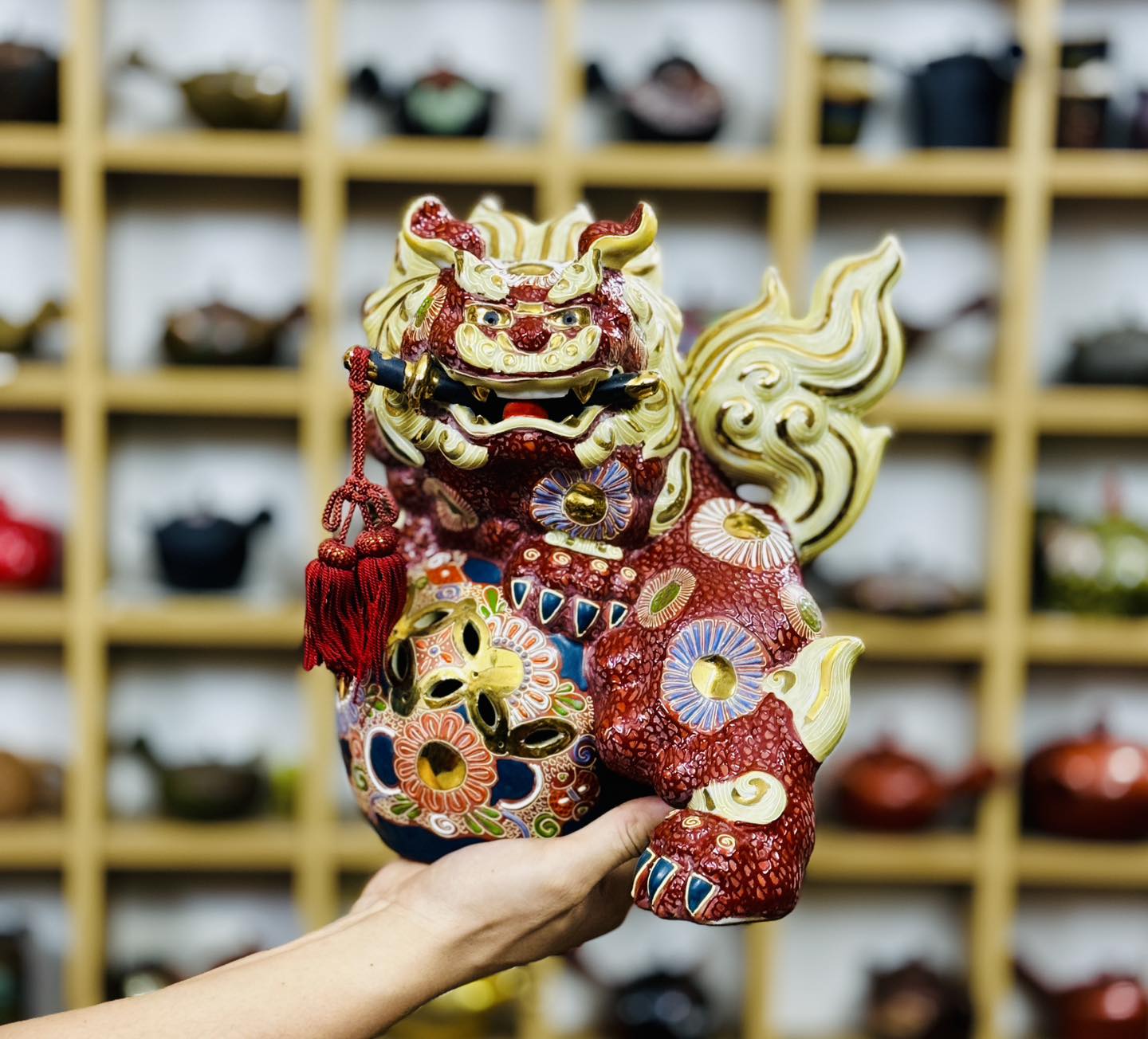 – Kỳ Lân được nghệ nhân của hãng Kutani 九谷焼 Nhật Bản chế tác chi tiết vẽ vàng trên nền đỏ rất đẹp. Điều đặc biệt là Kỳ Lân Đạp Hí và miệng ngậm gươm rất có hồn và được chế tác thủ công rất tinh xảo.
