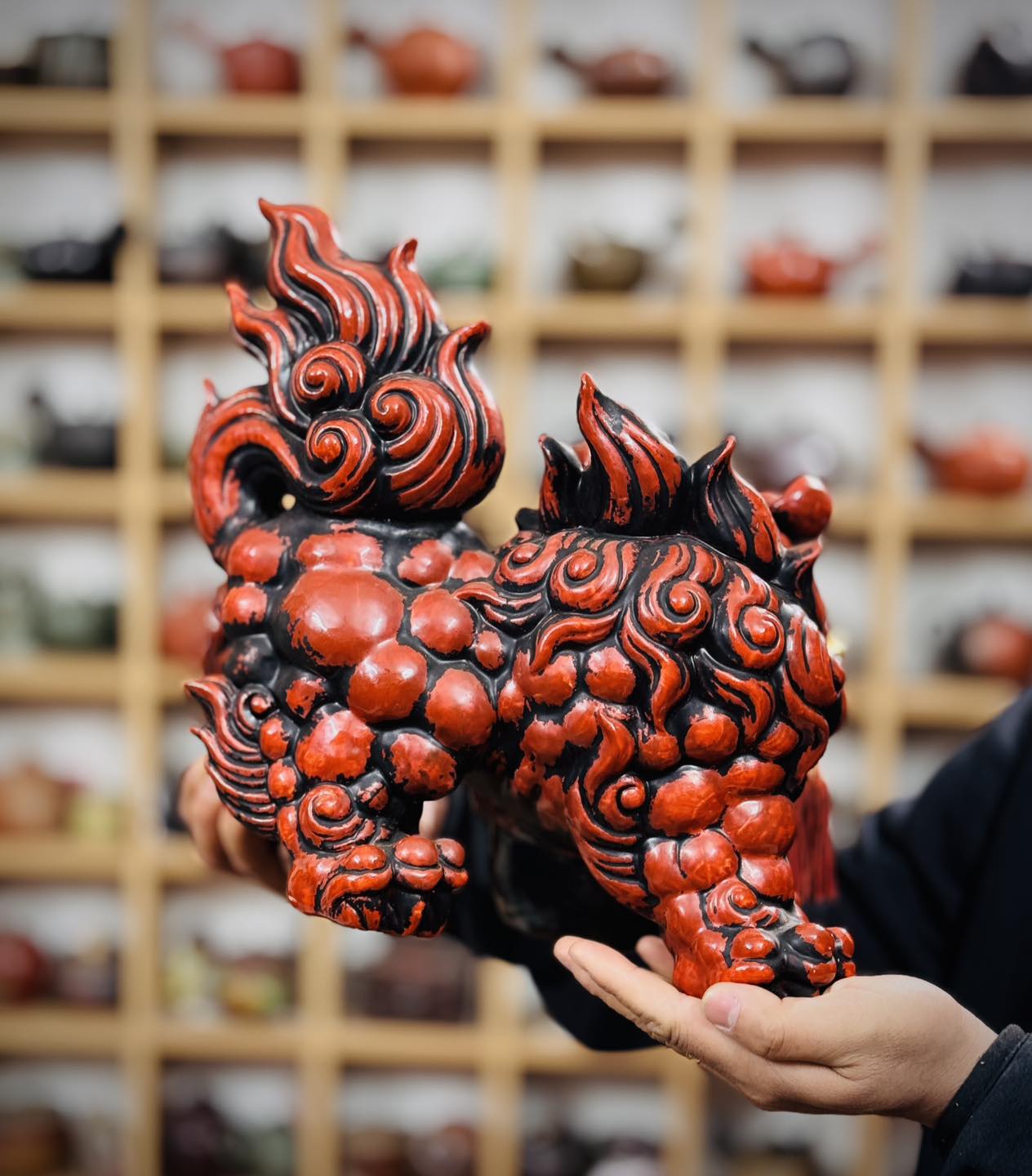 – Kỳ Lân được nghệ nhân của hãng Kutani 九谷焼 Nhật Bản chế tác thủ công, tạo hình rất đẹp. Điều đặc biệt là Kỳ Lân Đạp Hí và miệng ngậm gươm rất có hồn.