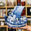 Thuyền gốm Nhật THẤT PHÚC THÂN men lam độc đáo Nhật Bản