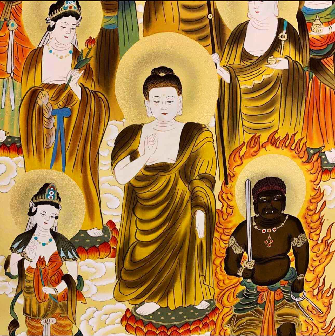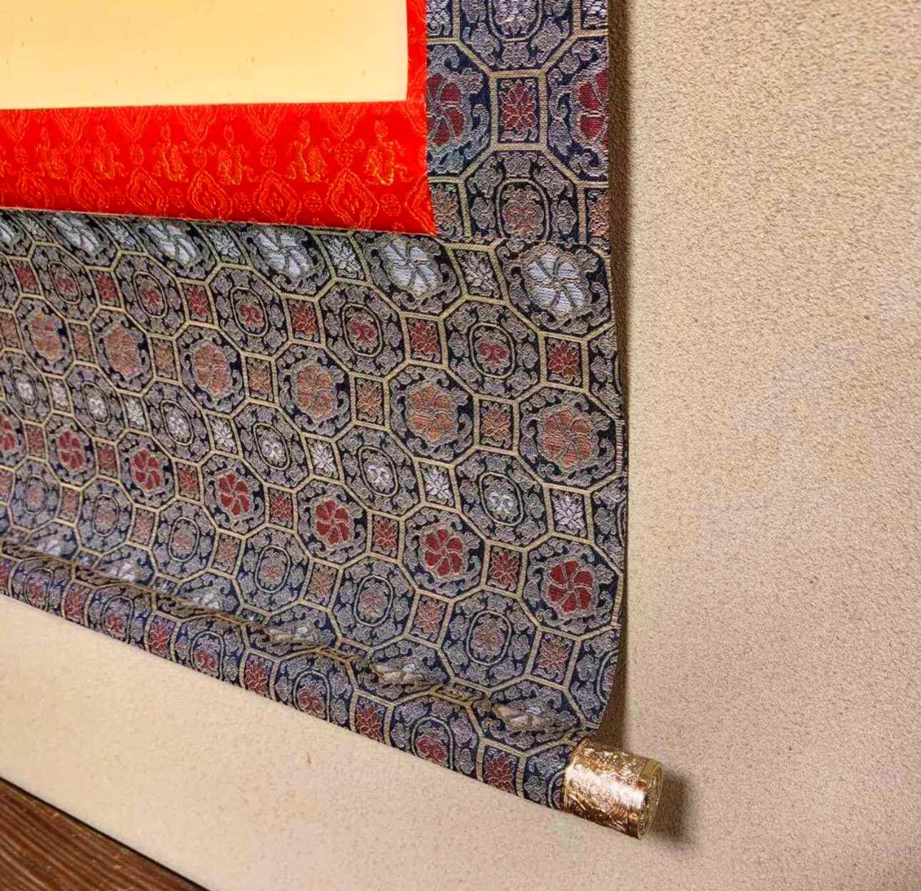 Tranh cuộn Thập Tam Phật trên nền giấy bồi gấm lụa kim sa thếp vàng rất đẹp