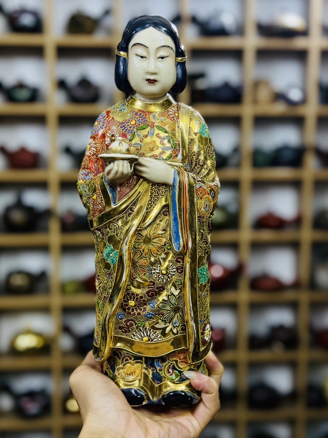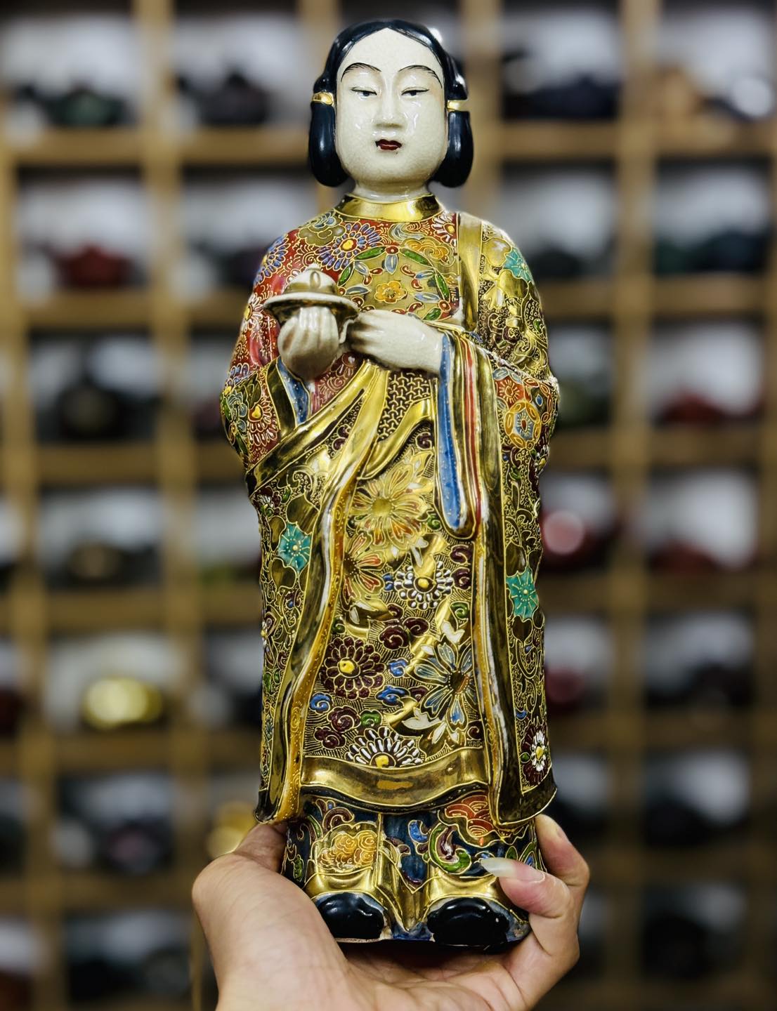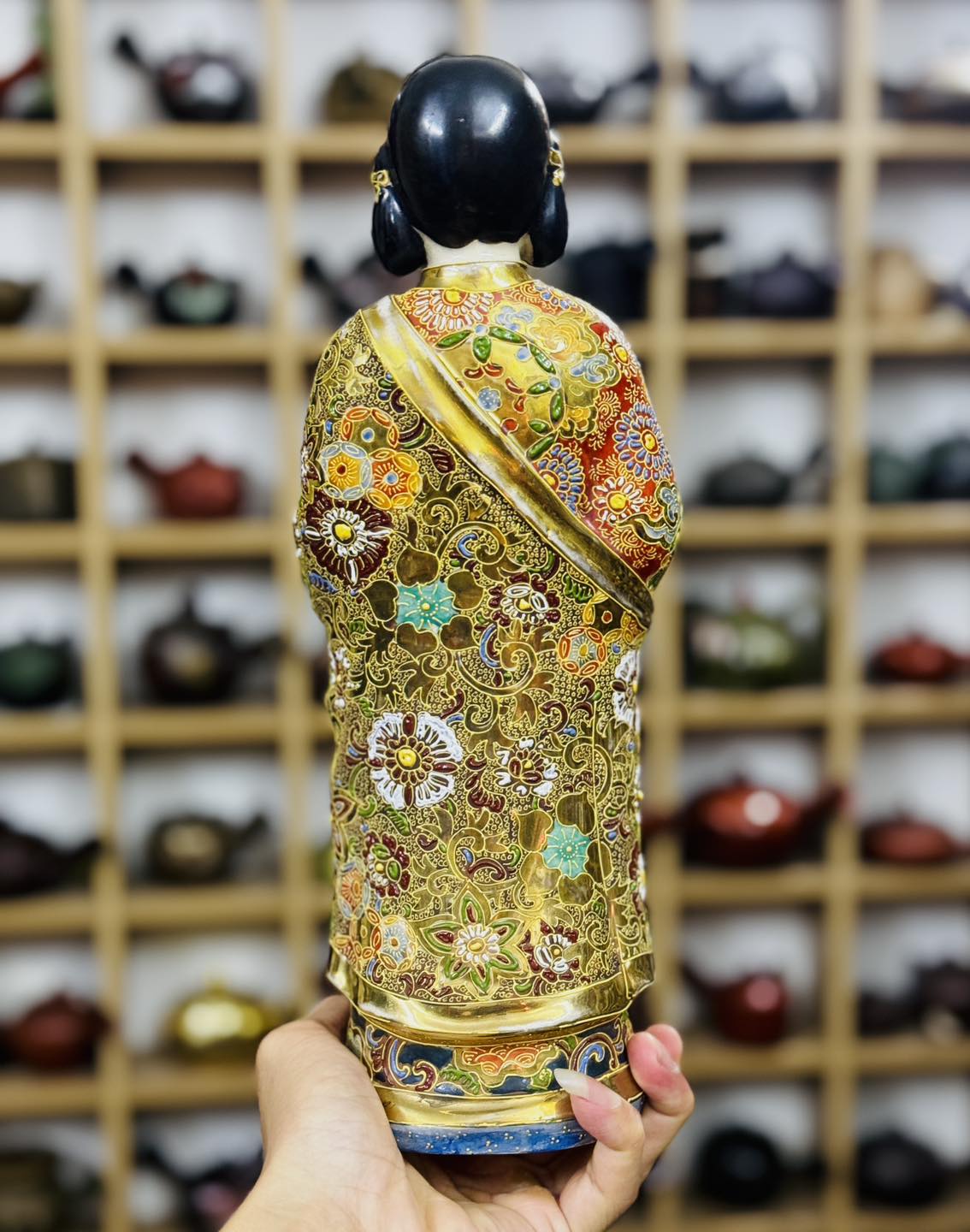 – Hoạ tiết men gấm vẽ tay vẽ vàng 24K rất đẹp ạ