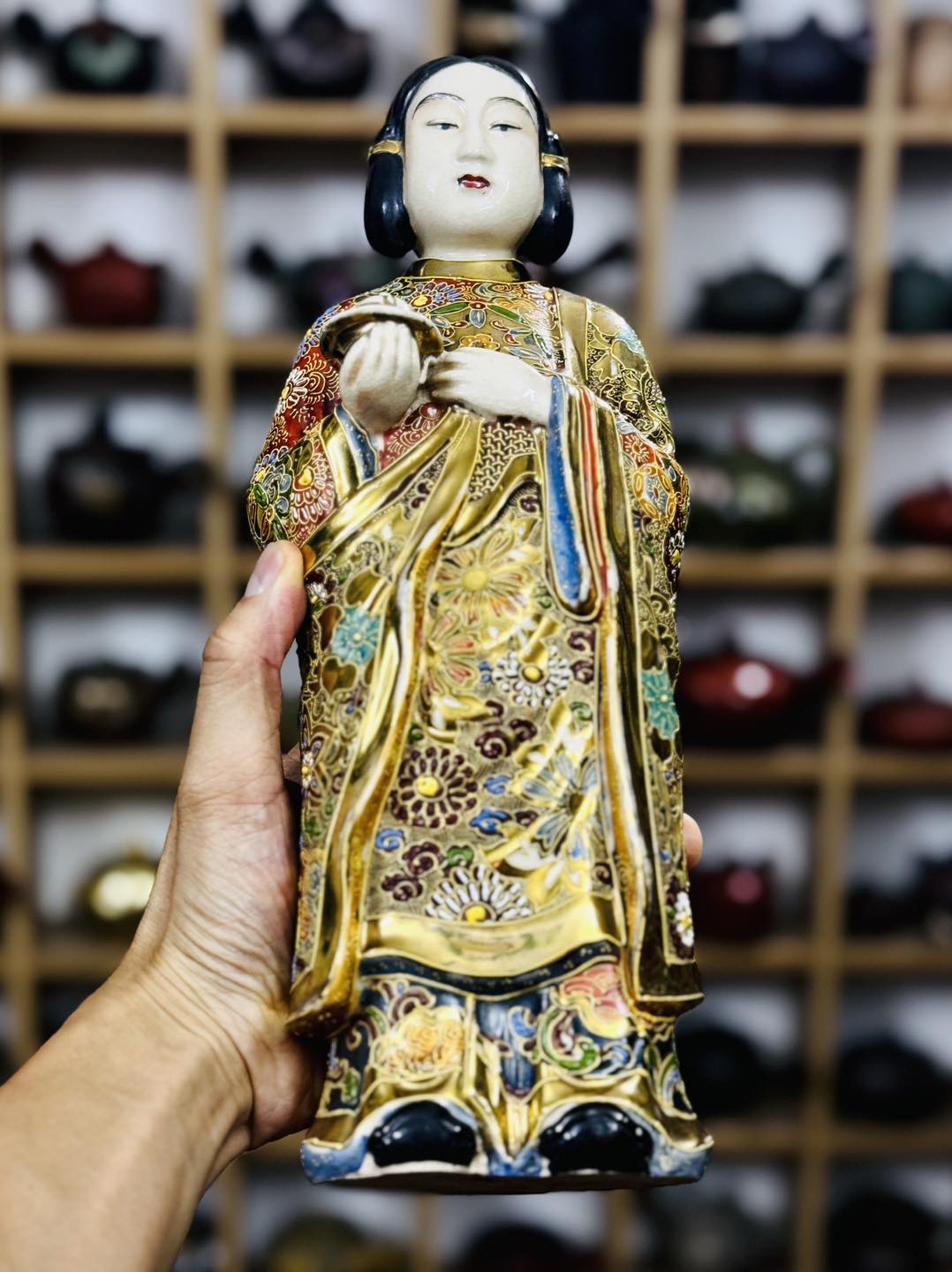 – Ba đức tính “Dũng cảm, sáng suốt và nhân từ” của Hoàng gia có thể chứng nghiệm theo dòng chảy lịch sử, văn hóa Nhật Bản thông qua bức tượng gốm nung Satsuma độc bản là hóa thân khoan hòa, thịnh vượng của Thánh Đức Thái Tử trong tư thế ngồi kiết già với đầy đủ tướng tốt của Đức Phật Thích ca Mâu Ni.