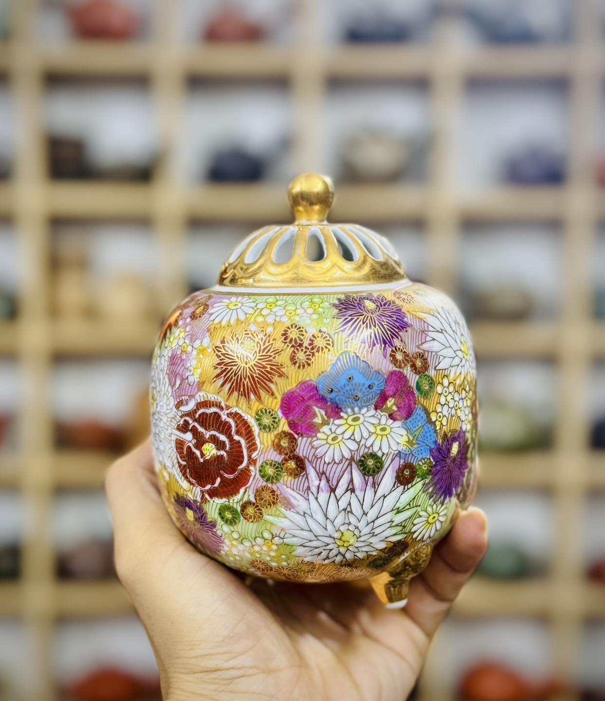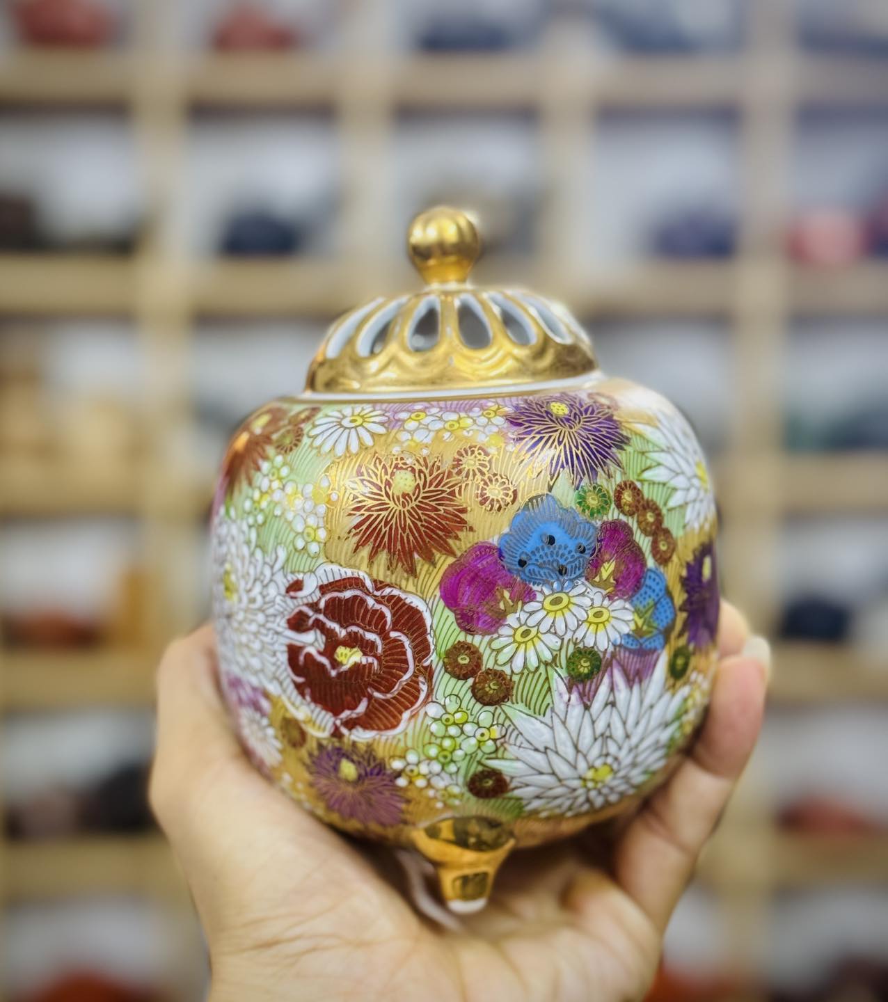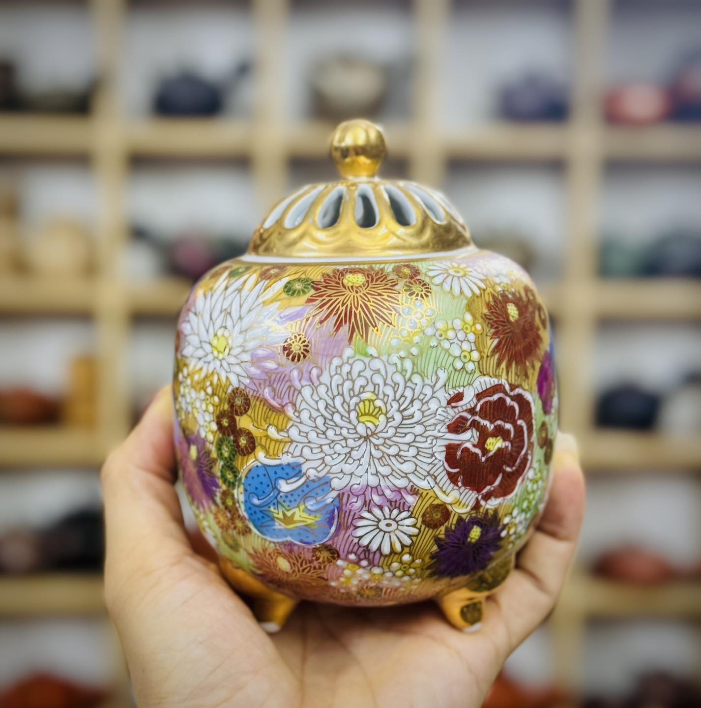 Xông trầm bách hoa Nhật Bản kutani vẽ vàng